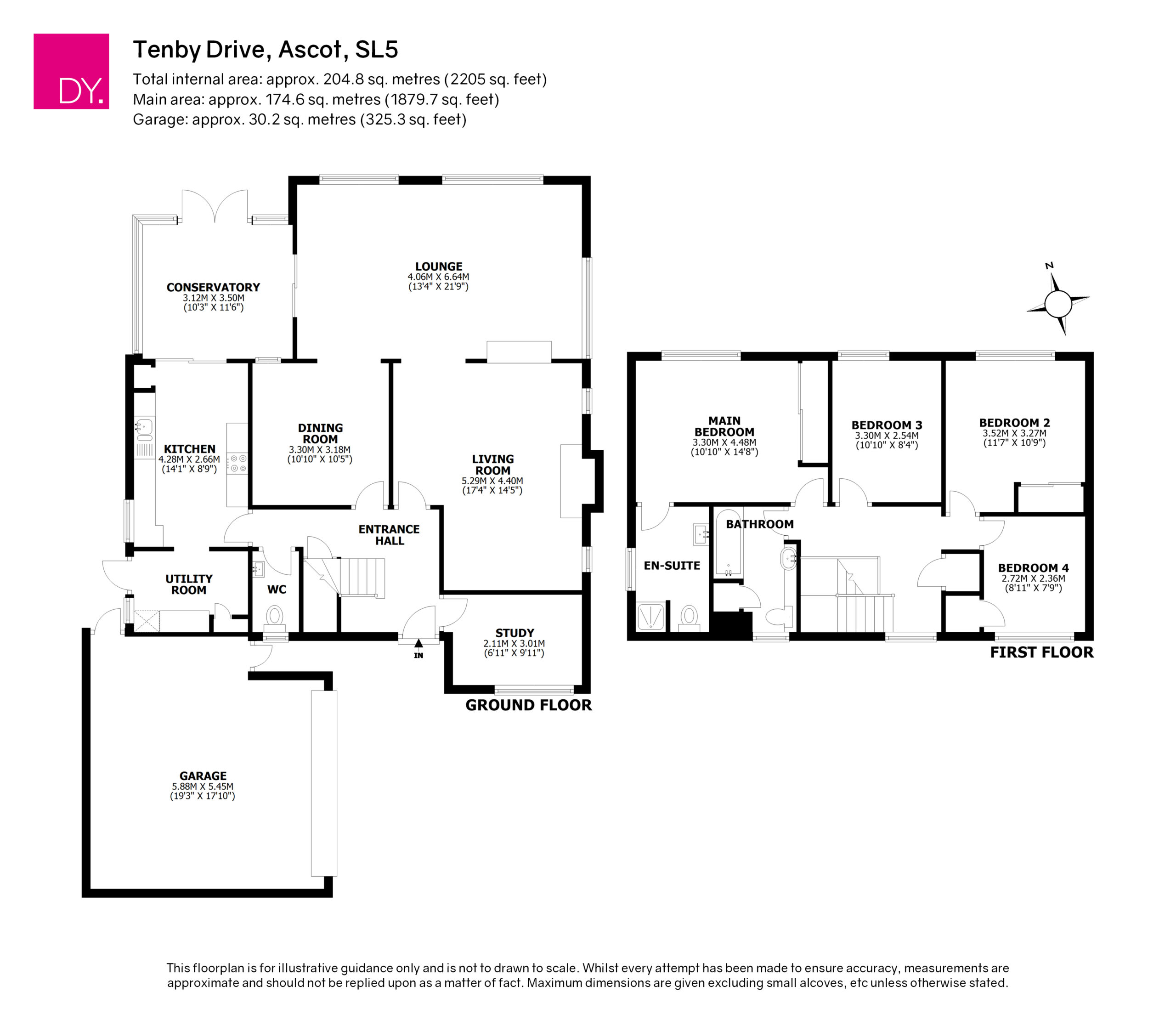The ground floor features a welcoming entrance hall leading to three well-proportioned reception rooms – a bright dual-aspect lounge, a living room, and a study, ideal for home working. The dining room connects directly to the kitchen and conservatory, creating a wonderful flow between spaces and direct access to the garden. A utility room, cloakroom/WC, and integral garage complete the downstairs accommodation.