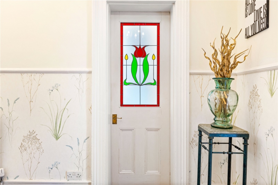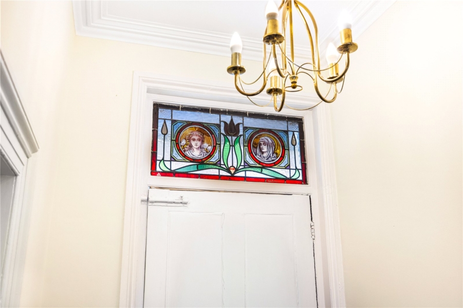 From the outset, the property impresses with its off-street parking and charming façade. Stepping inside, you’re welcomed by an elegant entrance hallway, complete with a stunning stained glass feature above the front door, setting the tone for the period charm found inside.
