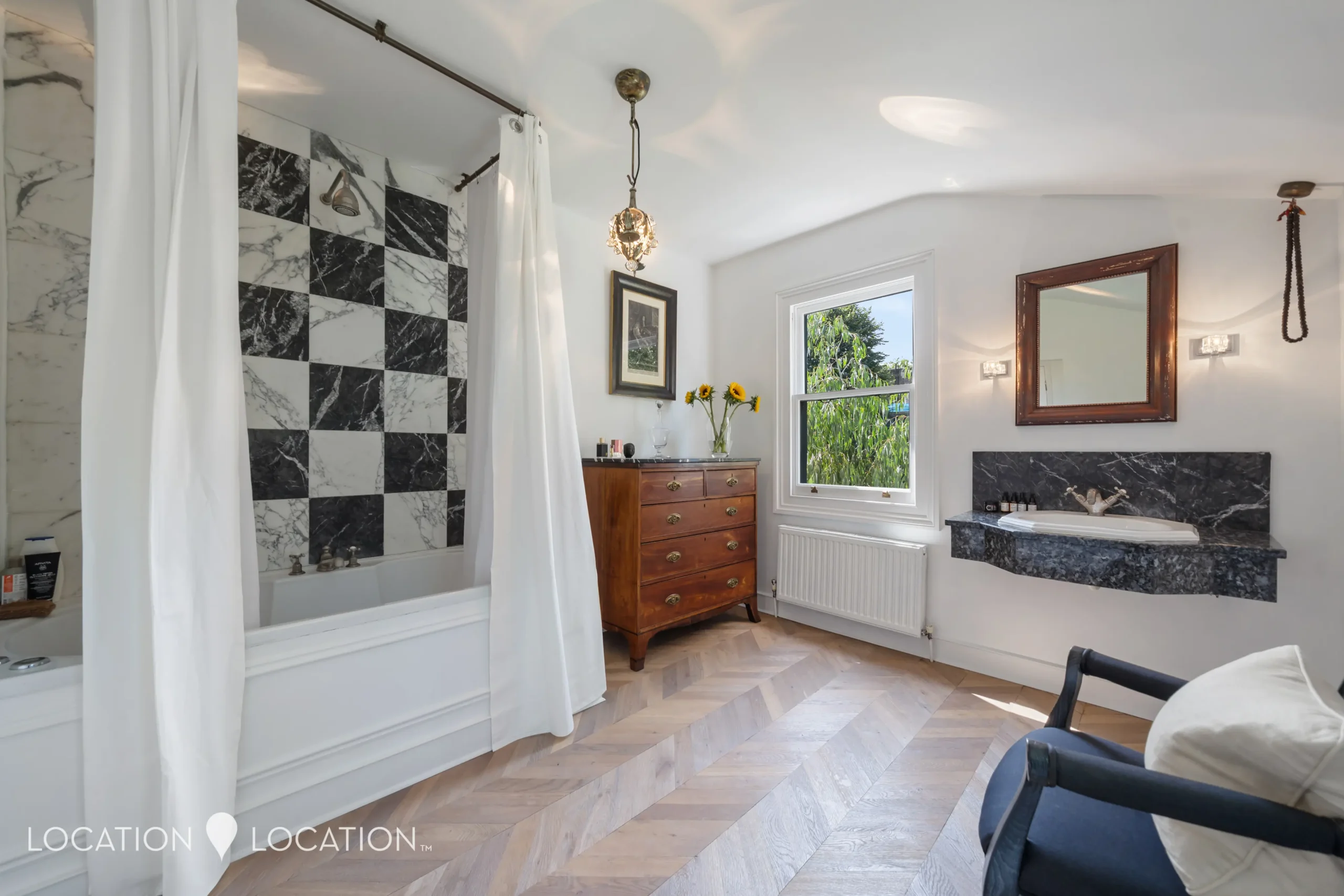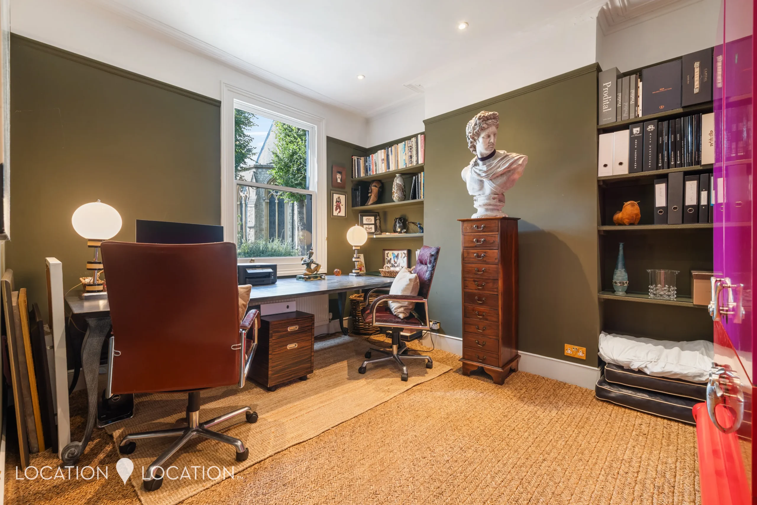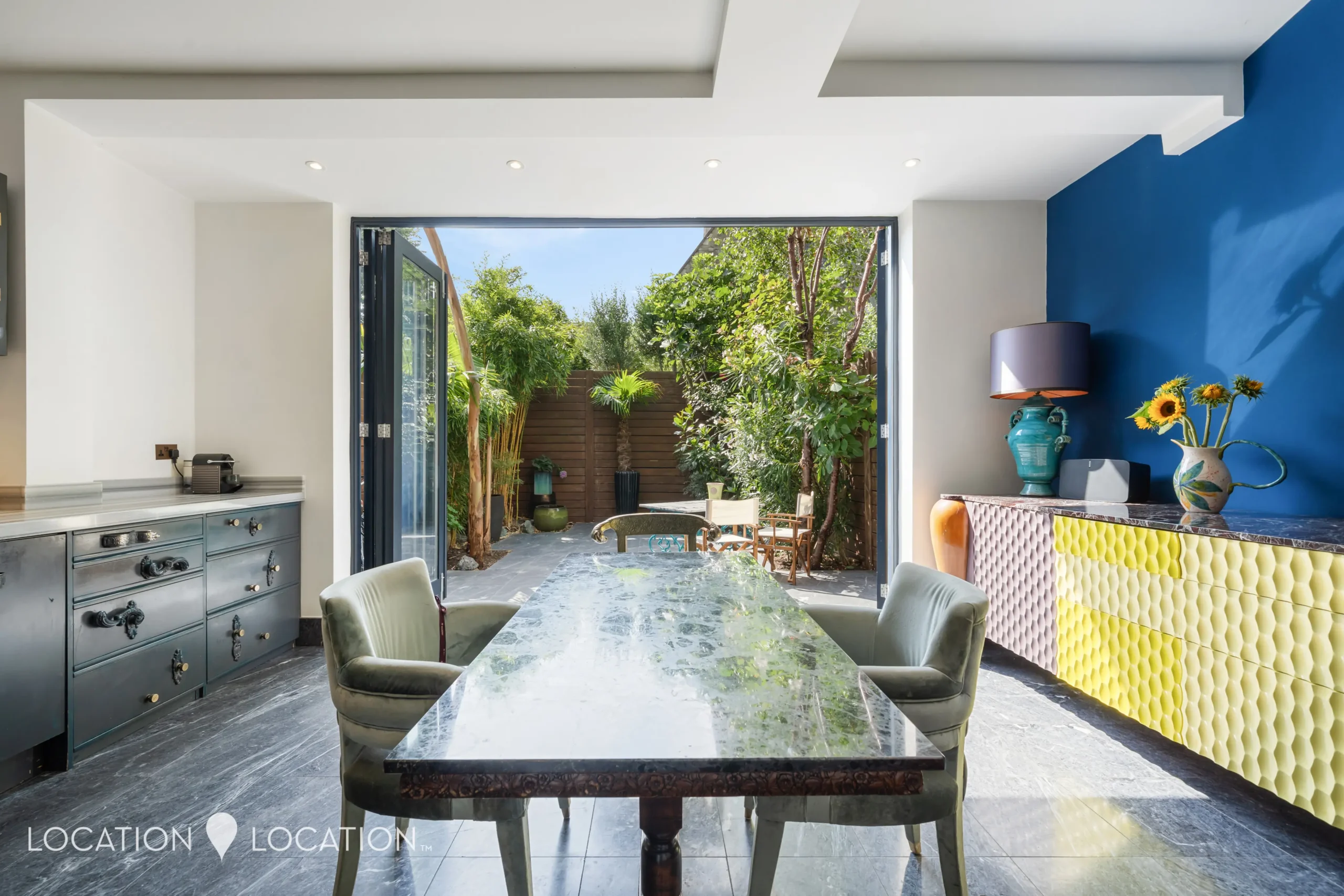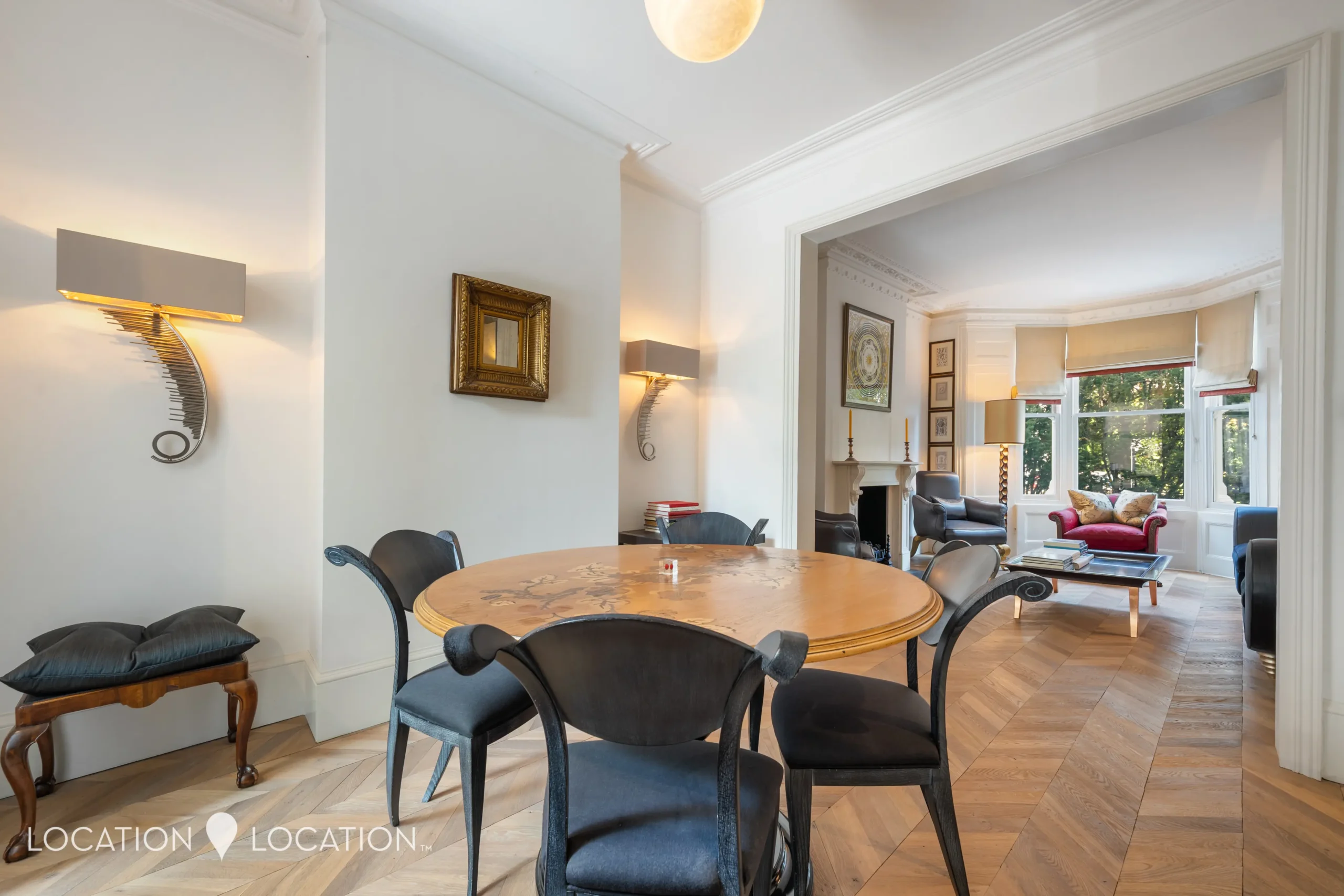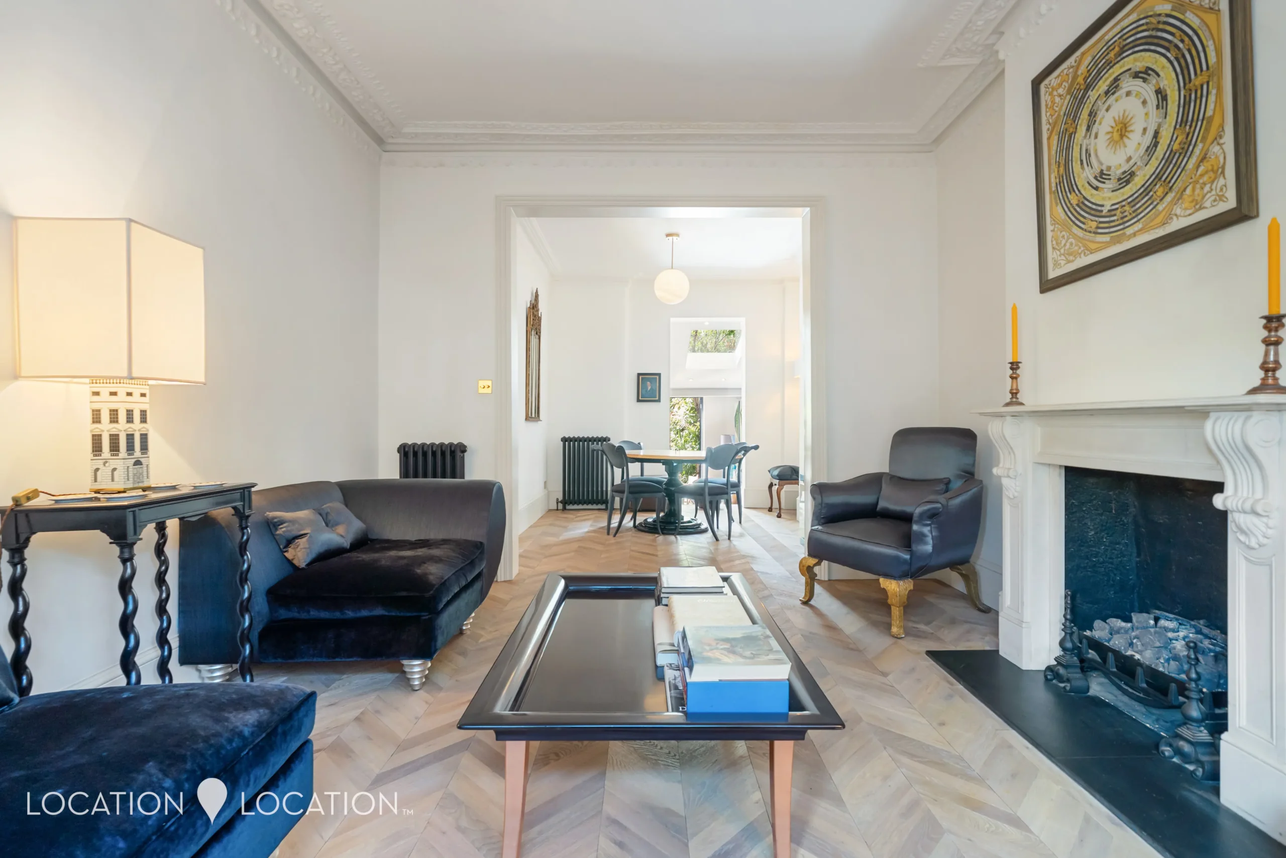 Having been under the same ownership for 20 years, the home has been well maintained and cared for. Offering excellent potential as a family home, the property combines charming period character with sleek contemporary design and high-quality finishes throughout. Accommodation includes four generous double bedrooms, two luxurious bathrooms, a classically elegant grand double reception, and a fully extended kitchen-diner with floor-to-ceiling bi-fold doors opening directly onto the leafy rear garden. With its east/west aspect, the house enjoys an abundance of natural light from sunrise to sunset, plus attractive views throughout.