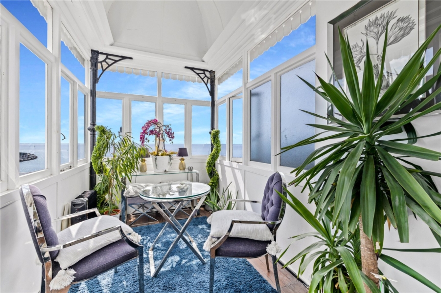 Completing this level is the home’s most unique feature, the original Belvedere. No. 11 is the only house on Arundel Terrace to boast this striking architectural gem, a sanctuary of glass and light offering an extraordinary 160-degree panorama of the coastline.