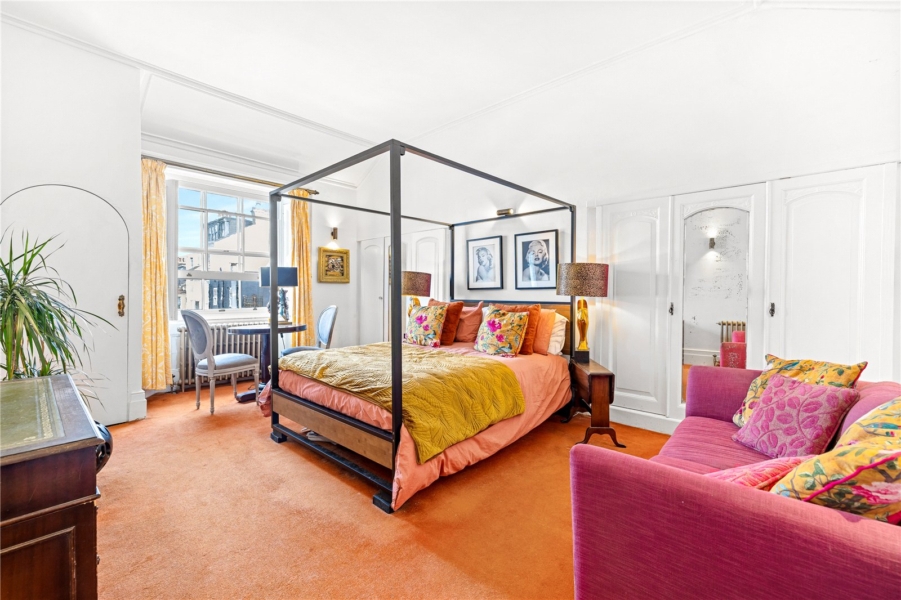 On the second floor, you will find the principal bedroom which stretches across the full width of the house, framing spectacular south-facing views of the sea. To the rear sits another bedroom that would make an ideal dressing room, together with a separate original ‘Harrods 1970 porcelain de-Paris bathroom suite’.