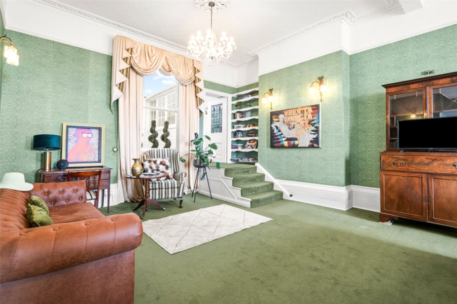 The first floor sets the tone for the grandeur within. The fully equipped kitchen sits alongside a peaceful bedroom, complete with a large en-suite bathroom. Subject to permissions, this space could be reimagined as a showpiece family kitchen/diner. At the front, the interiors soar with two breathtaking Regency reception rooms. The dining room, among the finest entertaining spaces in the city, flows seamlessly into the formal living room, both rich in period detail and opening out through sash windows to a south facing balcony.
