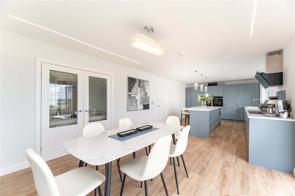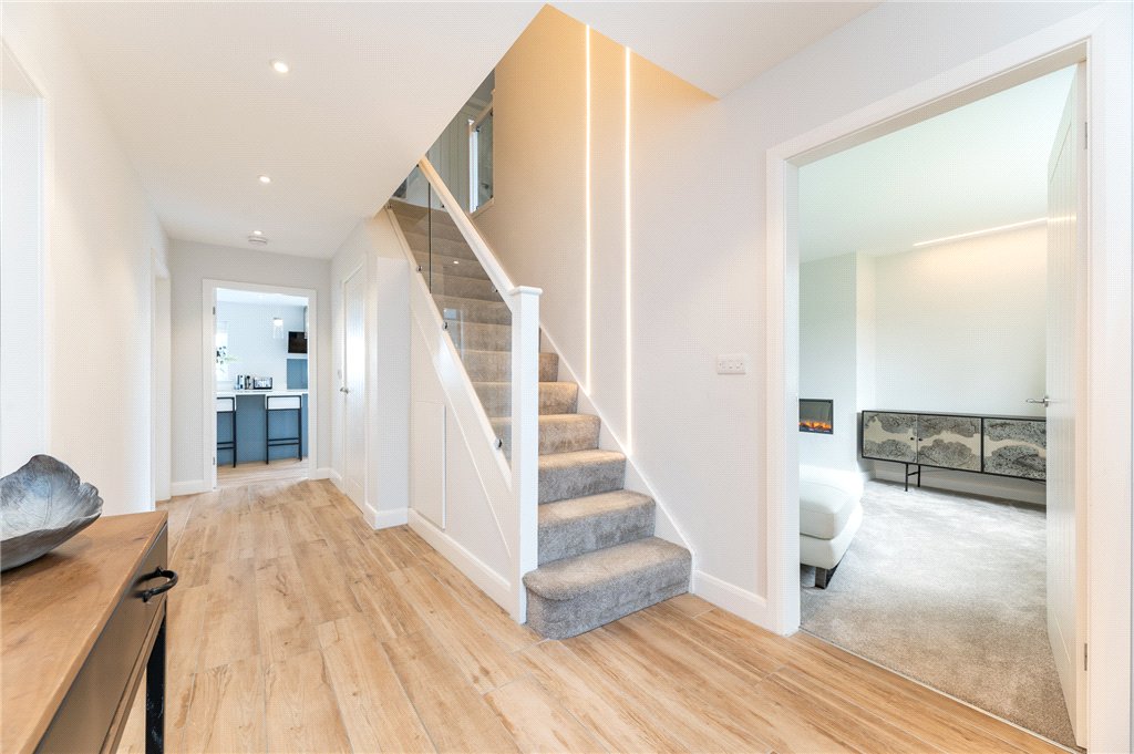To the first floor, the generous living accommodation continues and offers five luxurious bedrooms all of which benefit from superb rural views. The fabulous master also features a stunning en-suite and a walk in dressing room. There are two further contemporary en-suites along with a be-spoke house bathroom.