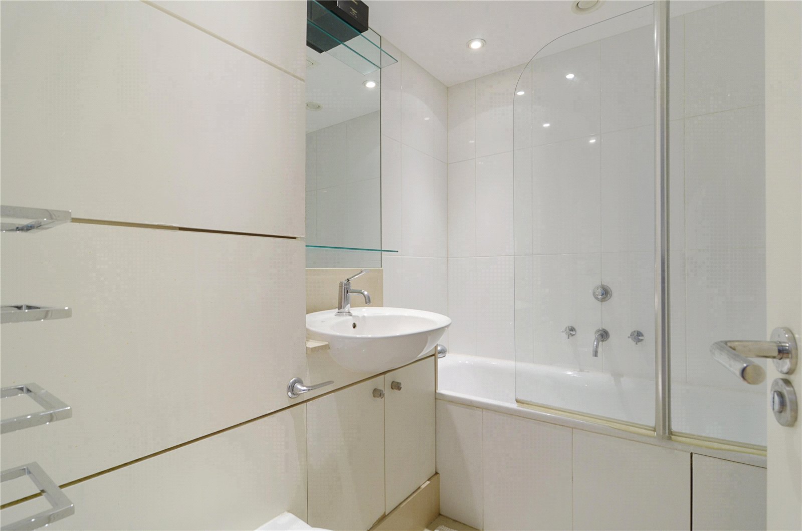 The bedroom is carpeted with a westerly aspect through the floor to ceiling doors with a juliet balcony. The bathroom has a shower over the bath and a tiled floor. The flat is held on a long lease with a Share in the Freehold.