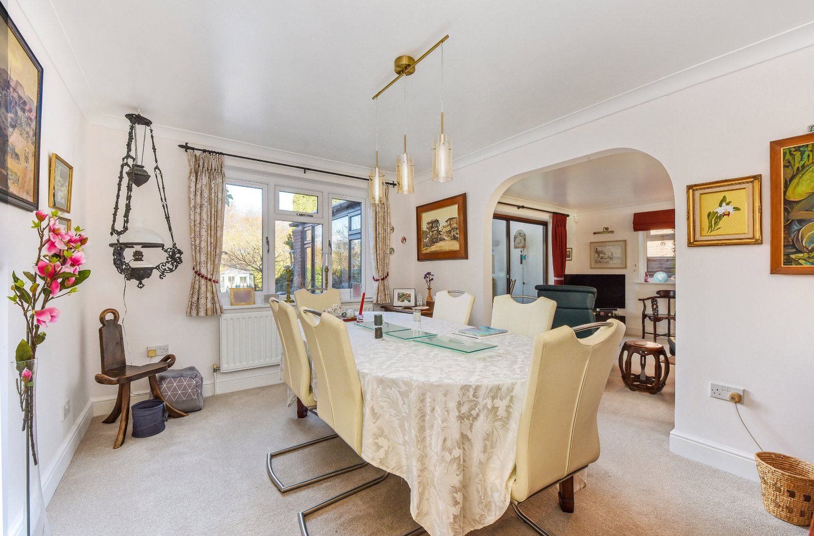 Upon entering the property, a spacious and welcoming hallway provides access to the first floor, the integral garage, kitchen, dining room, cloakroom and living room. The living room is a particular highlight, featuring a character fireplace and double-aspect windows that allow for excellent natural light. From here, there is access to both the dining room and the conservatory. The conservatory is a generous, fully glazed space with a pitched roof and inset skylights, ceramic tiled flooring and delightful views over the rear garden, with direct access outside. The kitchen is well appointed and leads into the breakfast room, which offers ample space for a good-sized family table and chairs. From the breakfast room, there is further access to a useful utility room.