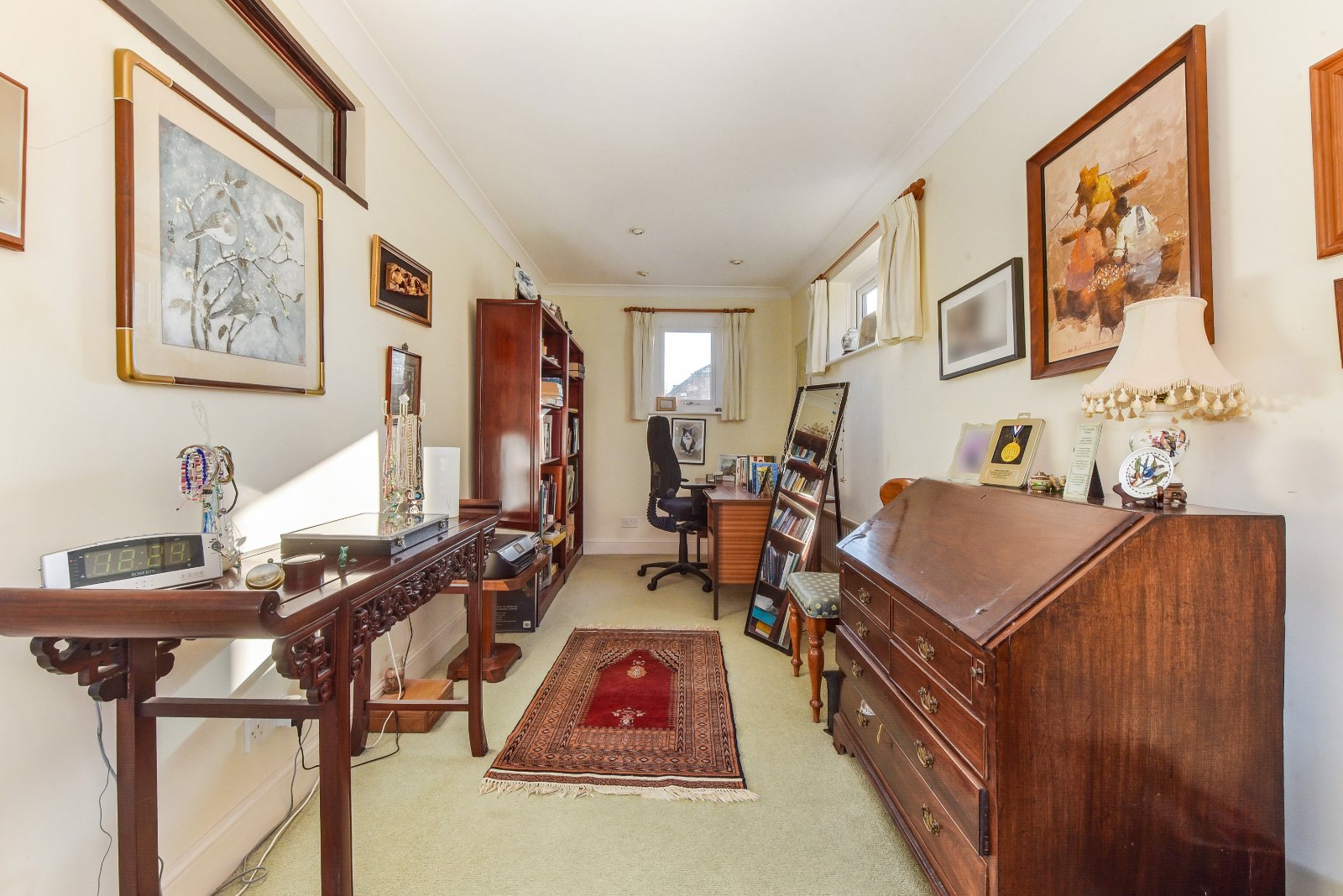 To the first floor, the principal bedroom suite provides a spacious bed area along with a relaxing seating area overlooking the rear garden. The suite also benefits from a wide range of built-in wardrobes, a dressing area and an excellent en suite shower room. Two further bedrooms are generous doubles, both featuring built-in wardrobes and storage. The remaining bedrooms are well-proportioned single rooms. The family bathroom is fully tiled and fitted with a shower cubicle and a jacuzzi-style bath.