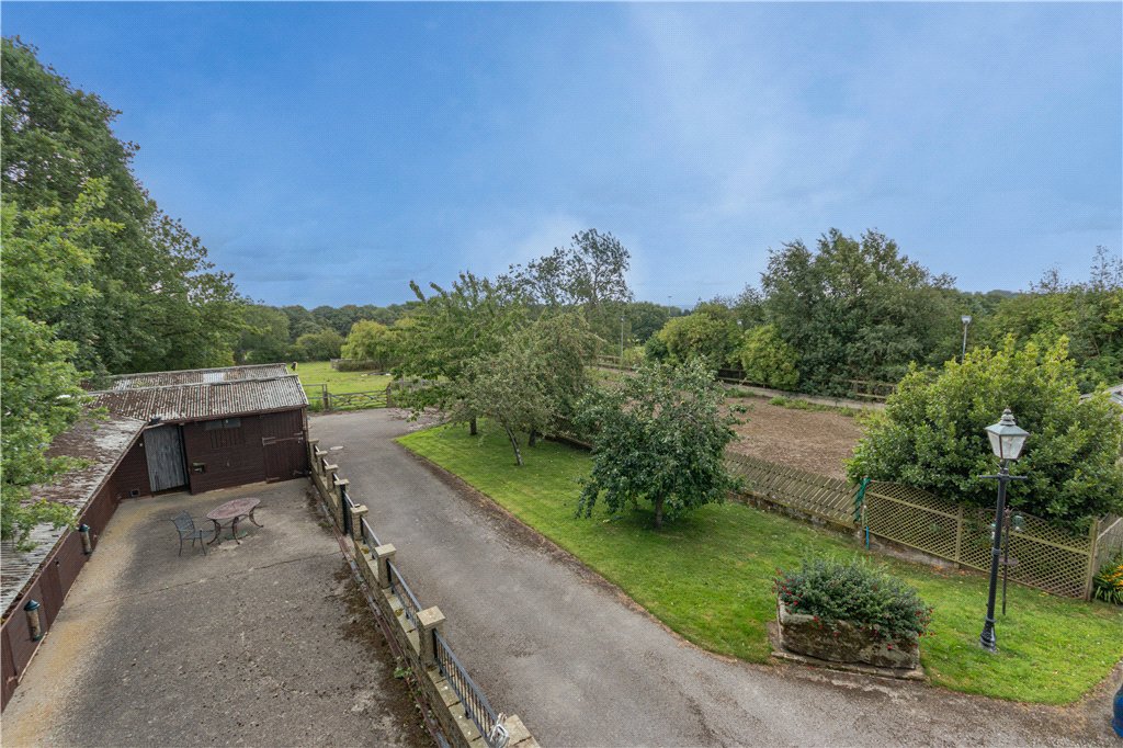 Approached through secure electric gates, the house is nestled within approximately eight acres of garden and land with stables, barns and riding arena. A sweeping driveway leads to a garage and a workshop, while the extensive grounds provide an abundance of outdoor space, perfect for family life and entertaining.