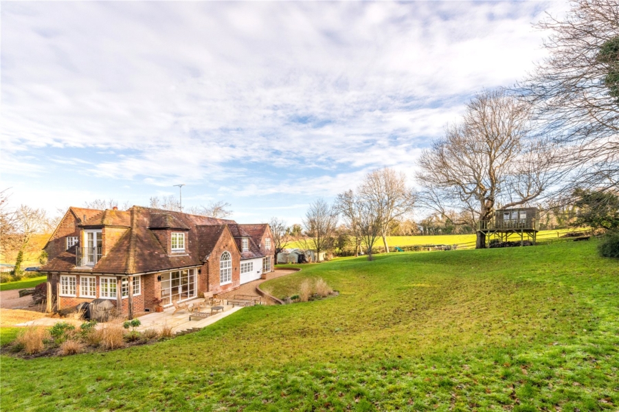 Externally, the immaculately maintained grounds wrap around the property and offer an exceptional sense of privacy, framed by mature planting and established trees. A sweeping shingle driveway provides ample parking, while the predominantly lawned gardens are complemented by a large, paved terrace to the rear leading from the beautiful kitchen, ideal for outdoor entertaining.