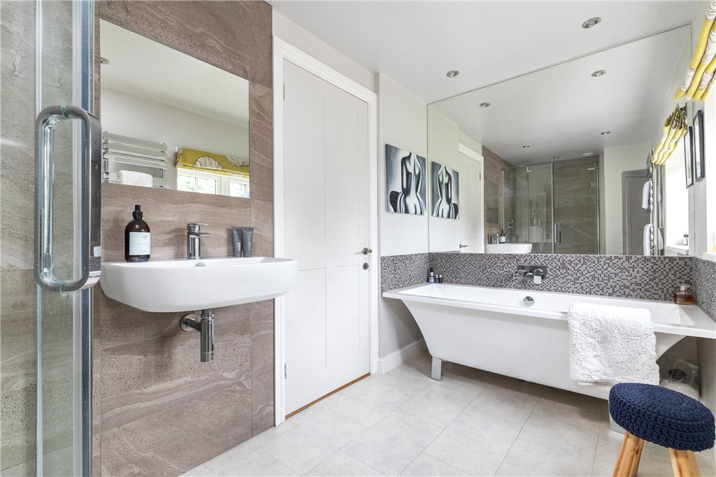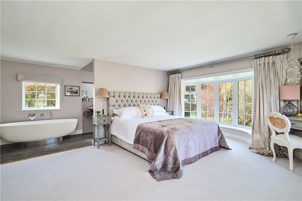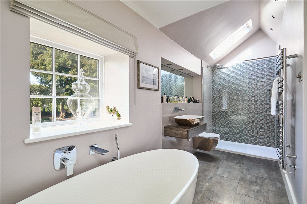 First floor – lovely Principal Bedroom Suite offering triple aspects to make the most of the beautiful far-reaching views; luxury en-suite Bathroom. Three further Double Bedrooms. House Bathroom with a stylish four piece suite.