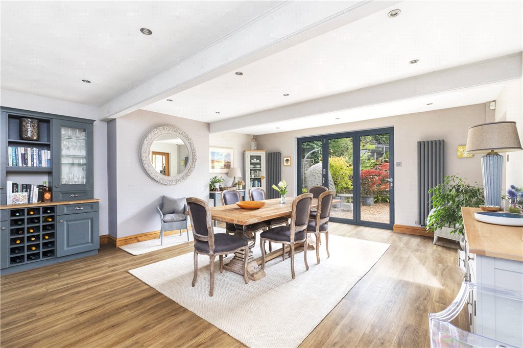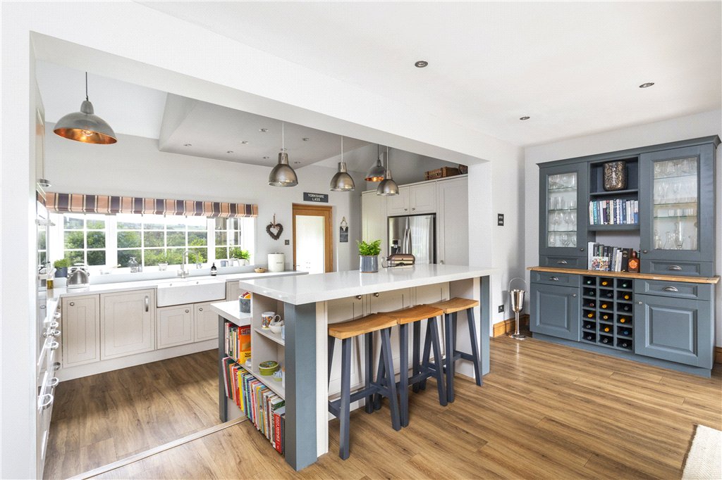 An enchanting four bedroom country home offering ideal family accommodation presented and equipped to an impressively high standard and offering beautiful far-reaching views across some of Wharfedale’s finest countryside. Sweeping driveway approach, garaging, delightful grounds and paddock. Well placed for Ilkley, Skipton and the Harrogate commuter.