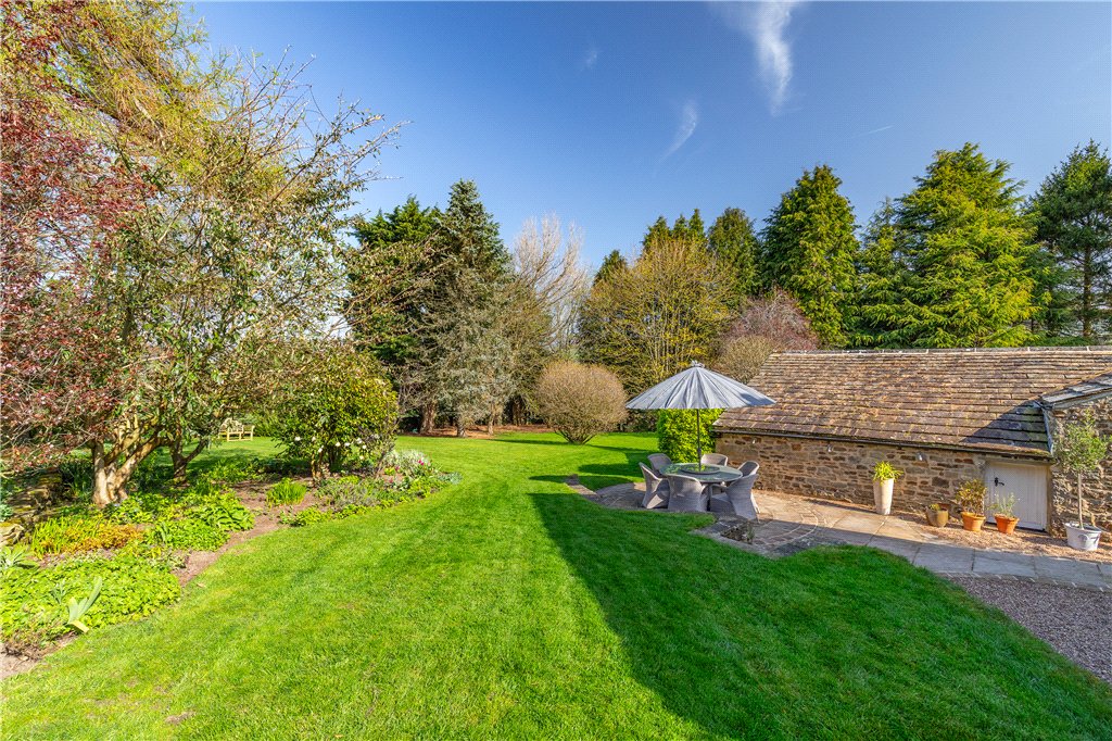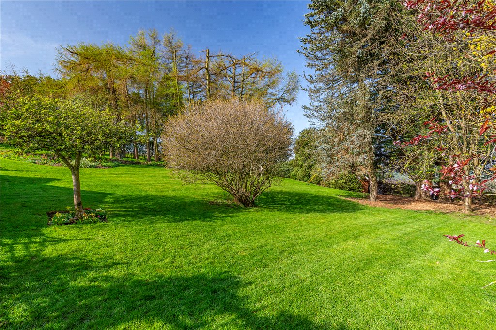 Externally, Resphill has lovely mature grounds – approached by a long sweeping, tree-lined tarmacadam driveway, which also provides access to the adjoining Resphill Cottage. There is expansive parking as well as a garage and home office. Beyond, the gardens provide sweeping lawns juxtaposed with delightful well stocked borders, shrubs, mature trees and peaceful wood.