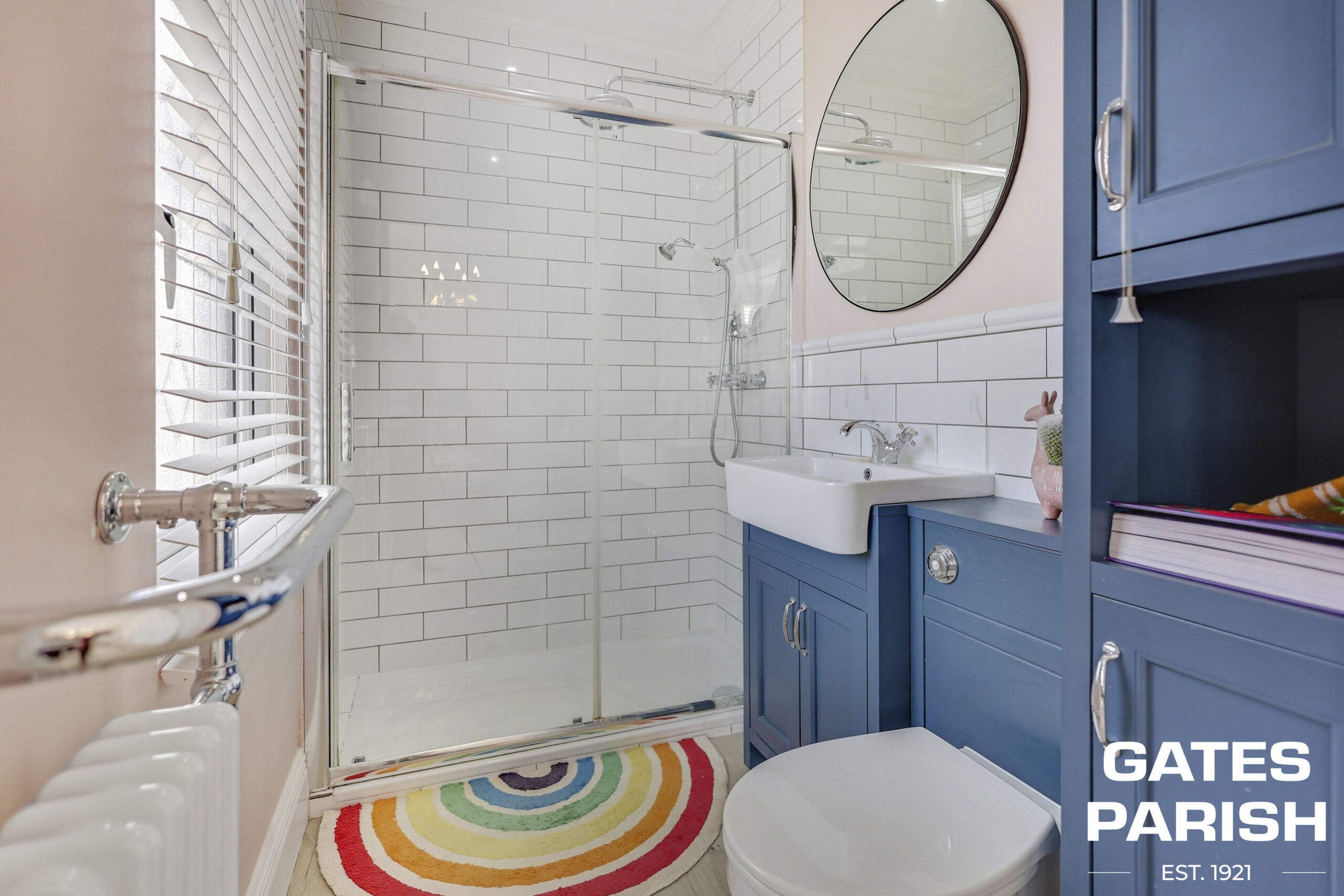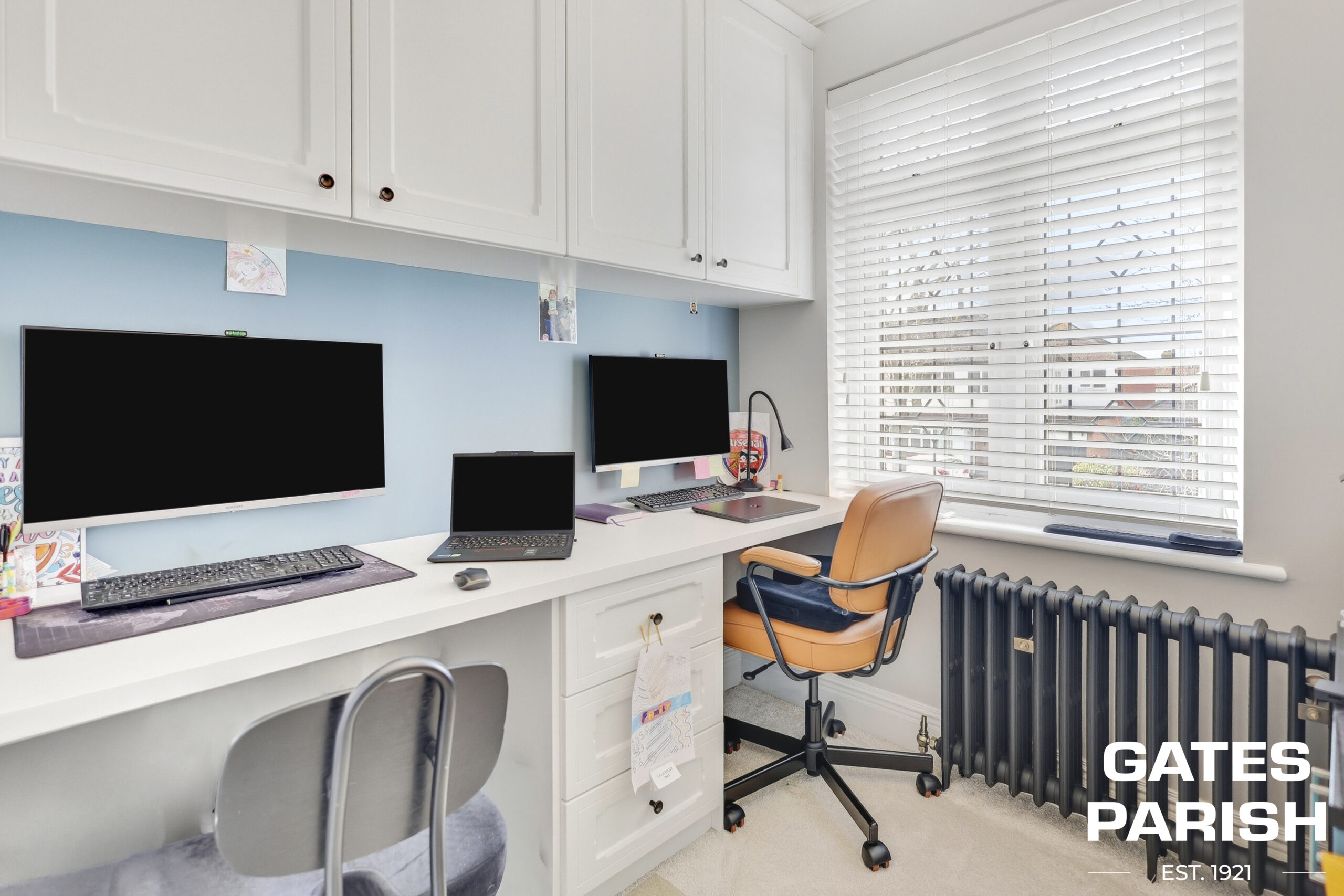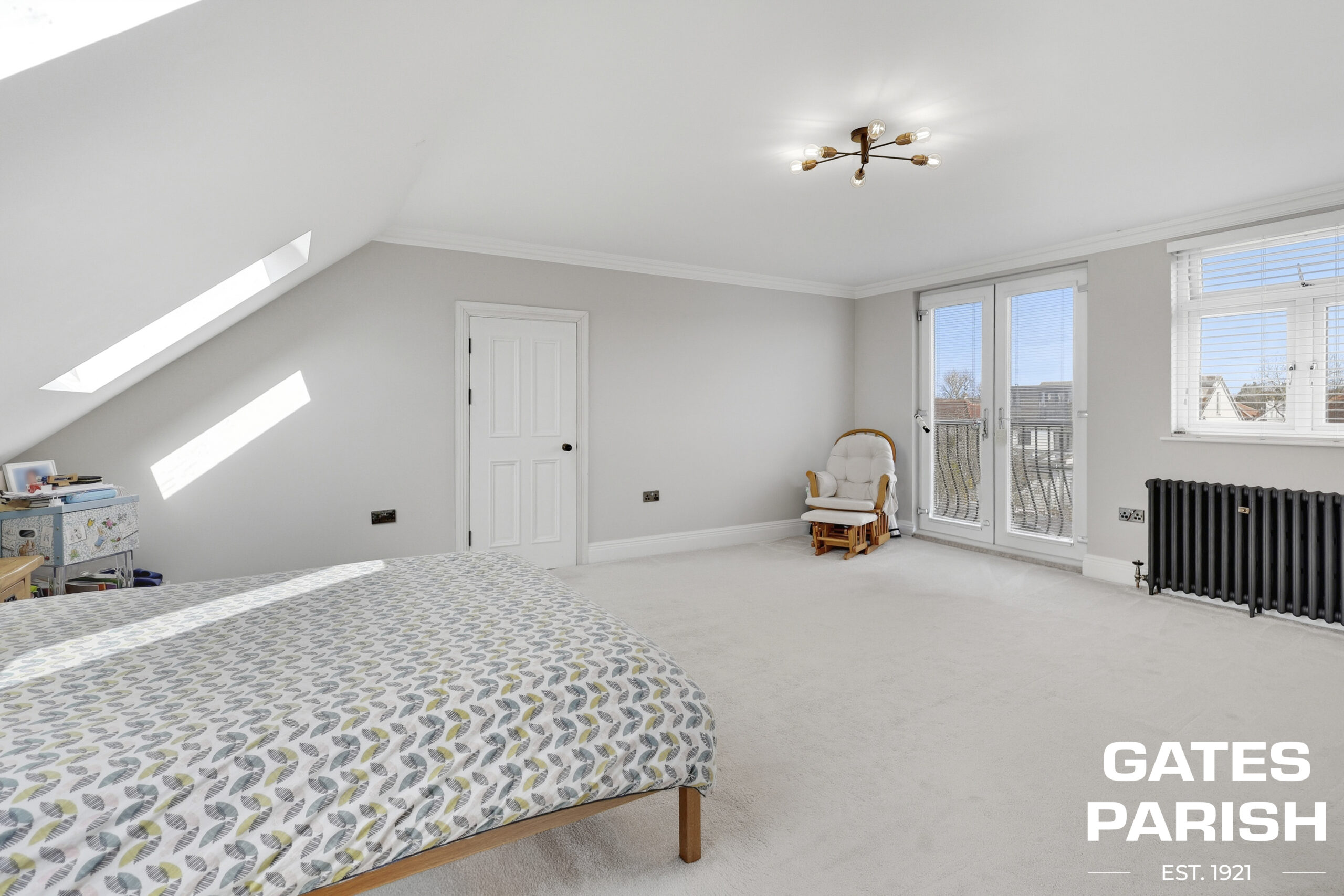 The first floor provides versatile accommodation including Bedroom Five / Study, ideal for home working. You will also find a generous double bedroom with en-suite, a modern family bathroom, and two further large double bedrooms, both benefiting from fitted storage and attractive bay windows.