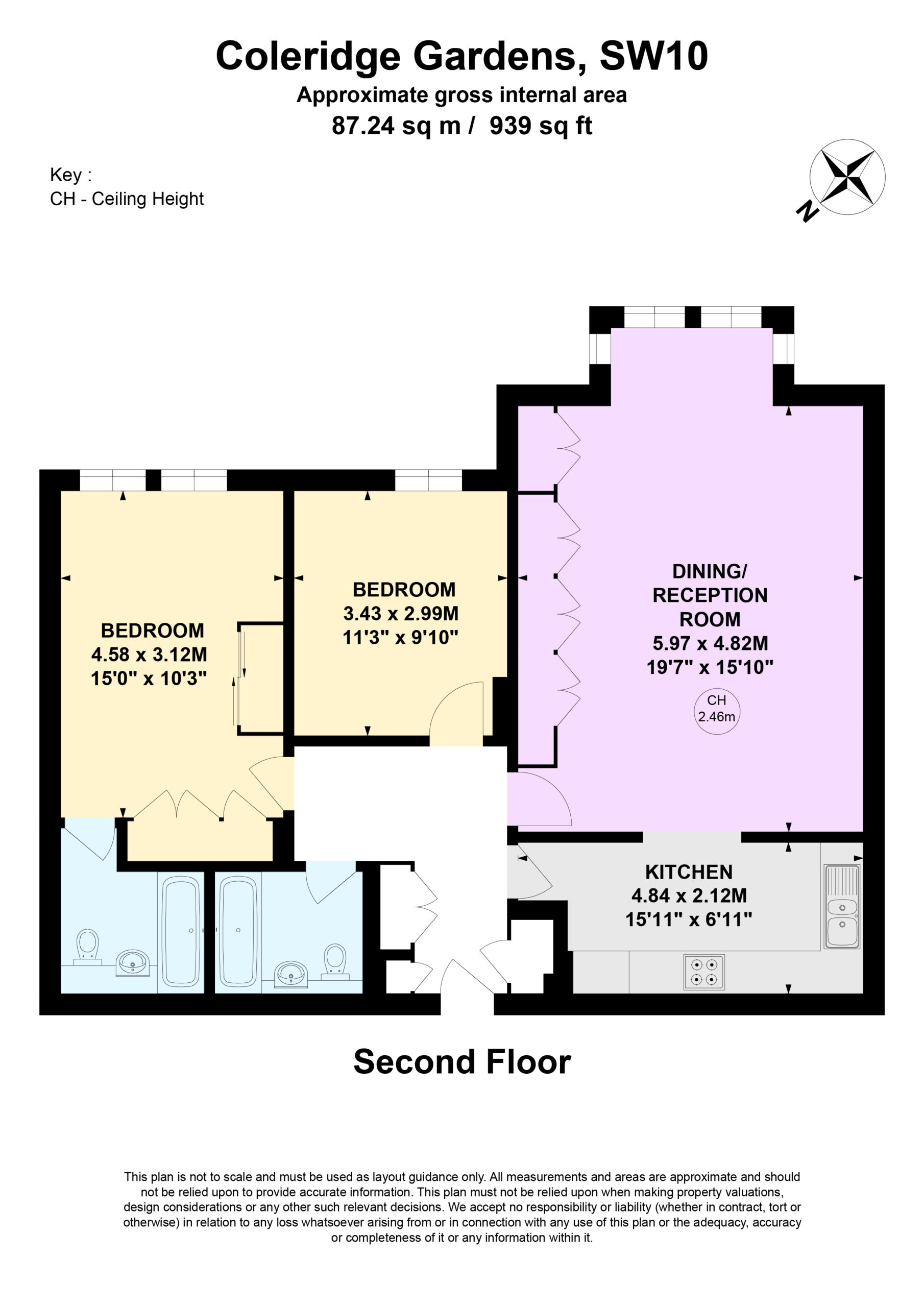 This imacualte apartment has two bedrooms, two bathrooms, a separate kitchen, reception / dining room.