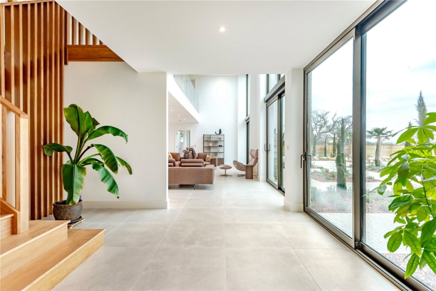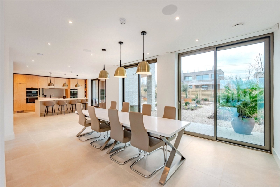 Slide open the Visoglide Plus doors and the boundary between inside and out disappears. The sitting and dining rooms flow effortlessly into the garden, drawing in the scents of summer and the serenity of the surrounding countryside. An entertainment wall and in-built Sonos system create the perfect space for relaxation or hosting in every season.