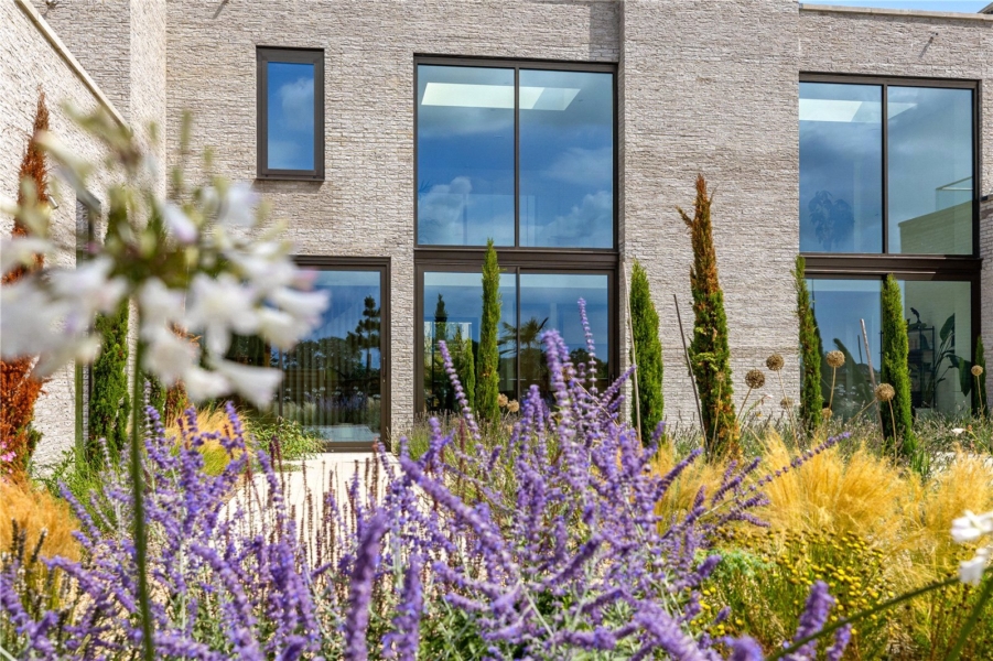 The garden is fully prepared for the addition of a plunge pool, wood-fired hot tub, and barrel sauna, creating a ready-to-go wellness retreat at home. Over 670 square metres of curated planting bring texture, colour, and year-round interest, framed by topiary hedging and seasonal flora.
