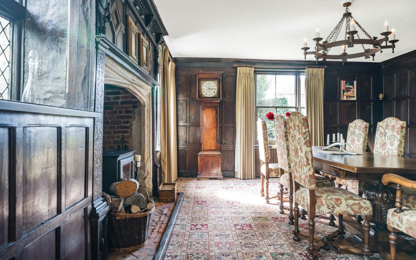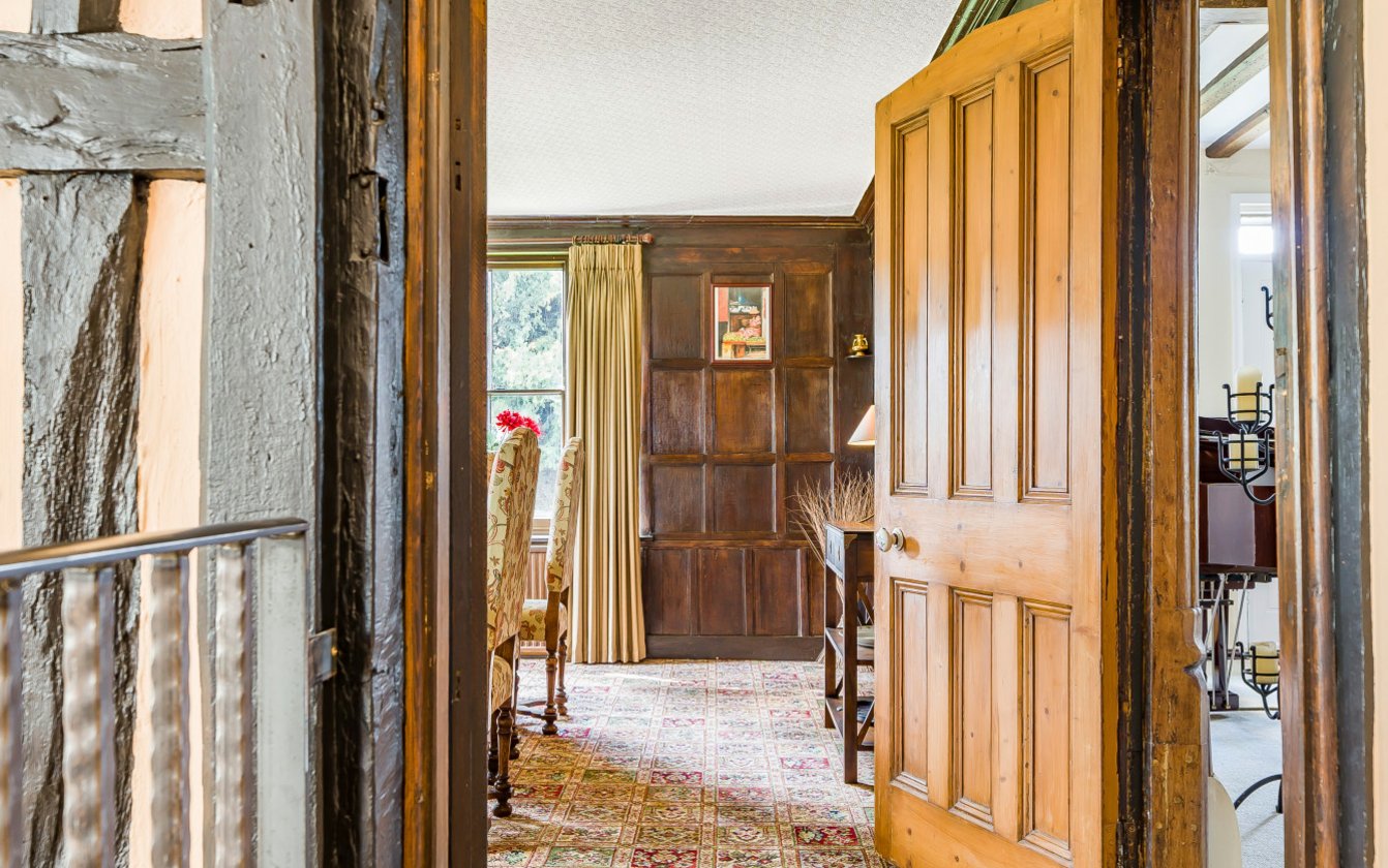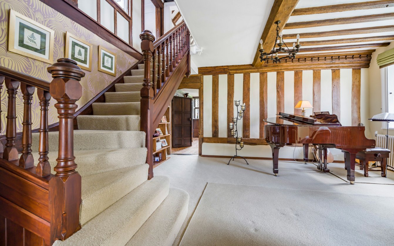 There is a reference by Hasted, the late 18th Century historian, to a house called Posere in 1278 which was owned by the Posere family, and which is now believed to be Posiers. The house now displays the characteristics of a 15th Century Wealden Hall House, timber framed under a Kent Peg tiled roof with jetties, substantial chimney stacks and impressive King Post exposed in the vaulted ceiling on the First Floor Lounge. It is believed that the house was clad in the 19th Century and now has rendered elevations. The house is an imposing family home with well proportioned accommodation throughout and has undergone significant improvement and ongoing maintenance by the current owners since the 1990s.