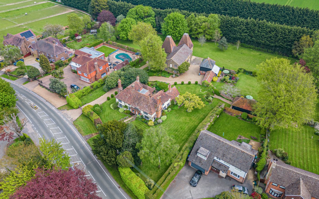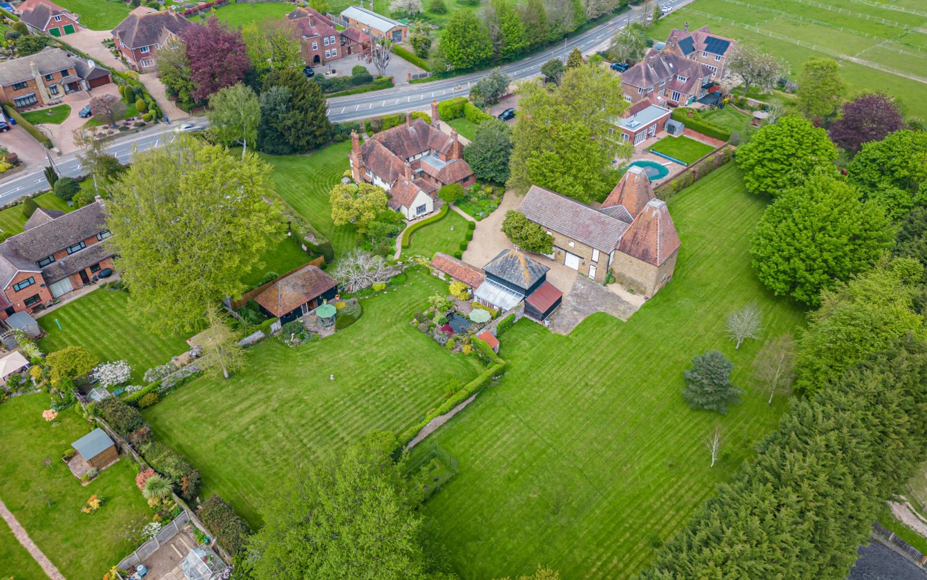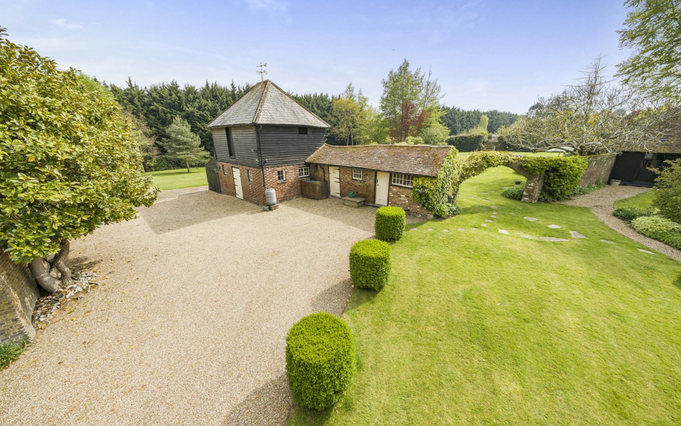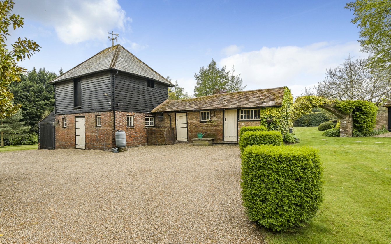 Approached through wrought iron double gates or through a five bar gate leading to a sweeping gravel driveway. The house itself is impressive, set comfortably in manicured gardens. The driveway leads to the rear of the house with ample parking between the Oast building and the Stable Block. A brick arch leads to a wonderful walled garden overlooked by the Summerhouse and is ideal for entertaining. The paddock to the rear of the property is rectangular in shape and extends to approximately 0.85 acres/0.35ha.