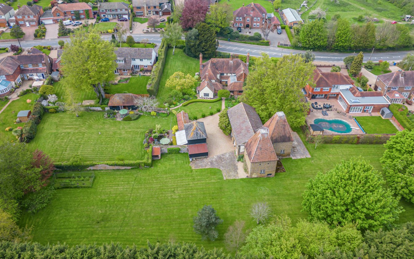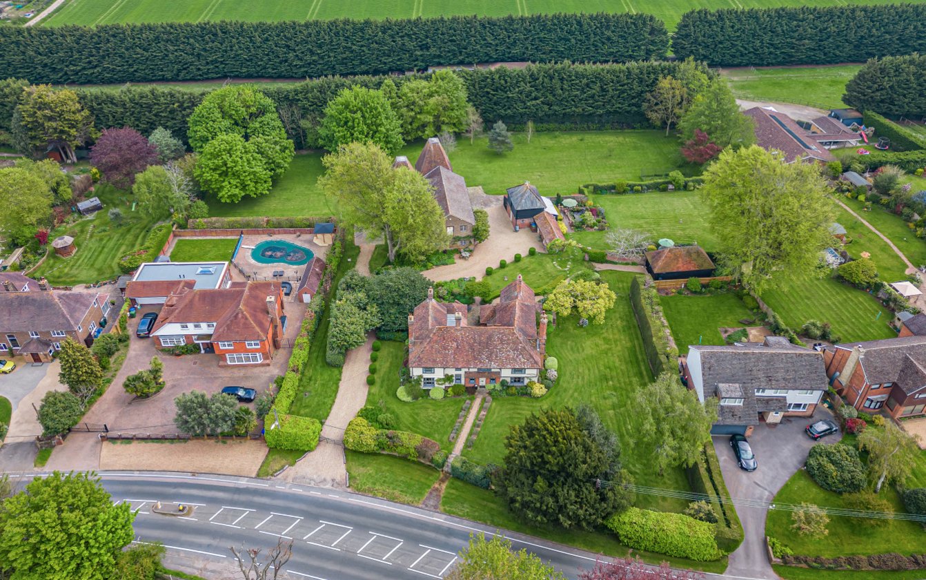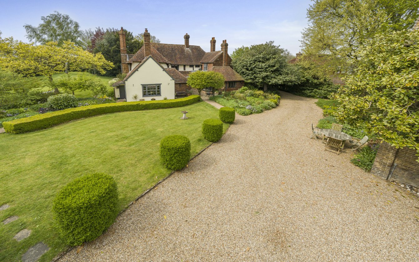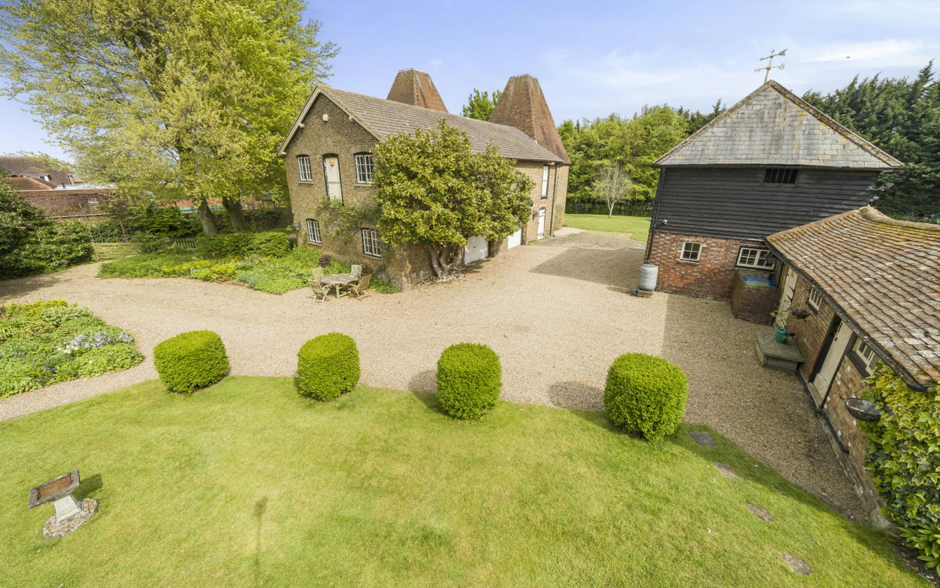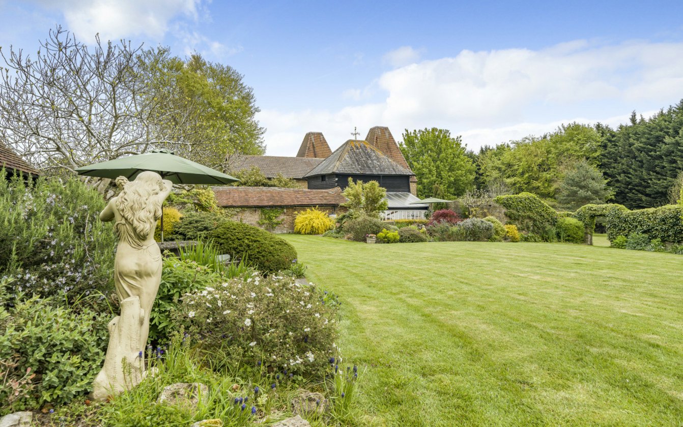 Approached through wrought iron double gates or through a five bar gate leading to a sweeping gravel driveway. The house itself is impressive, set comfortably in manicured gardens. The driveway leads to the rear of the house with ample parking between the Oast building and the Stable Block. A brick arch leads to a wonderful walled garden overlooked by the Summerhouse and is ideal for entertaining. The paddock to the rear of the property is rectangular in shape and extends to approximately 0.85 acres/0.35ha.