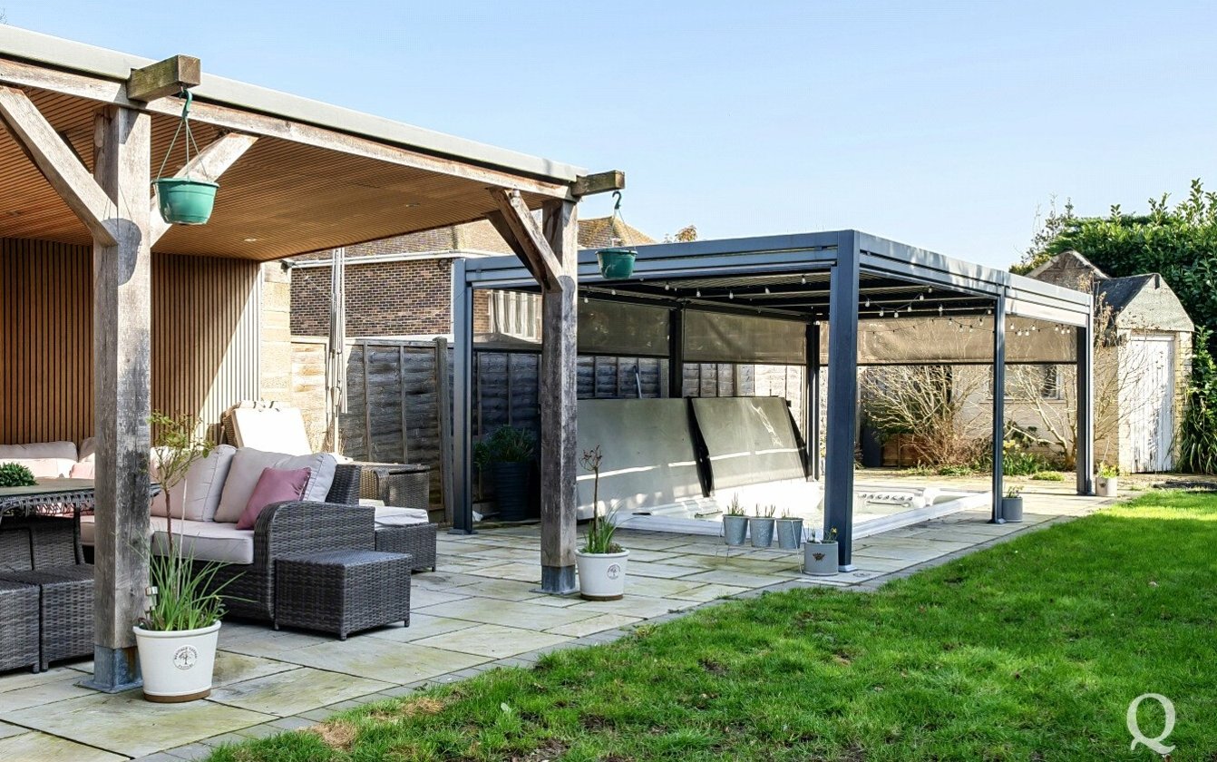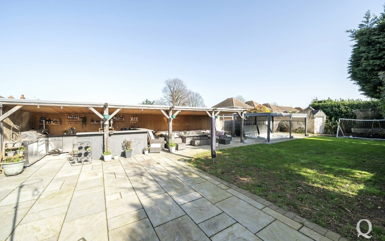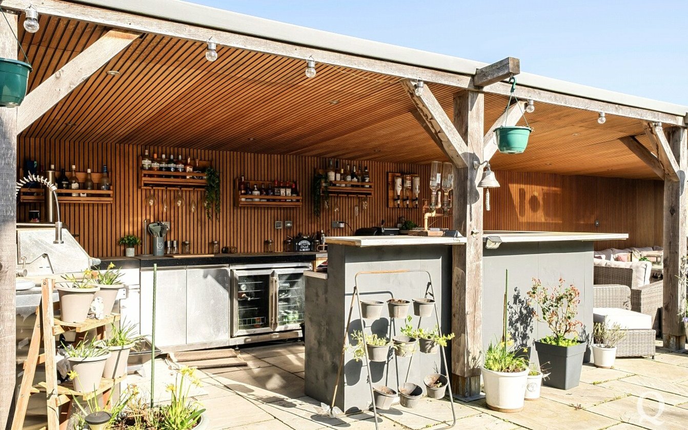Externally, the property continues to impress with a beautifully landscaped rear garden designed with entertaining and relaxation in mind. The garden features an expansive patio area, an impressive outdoor kitchen, and a sunken swim spa, creating a superb outdoor entertaining space ideal for hosting family and friends.