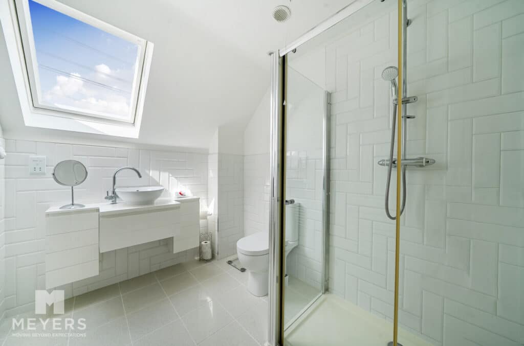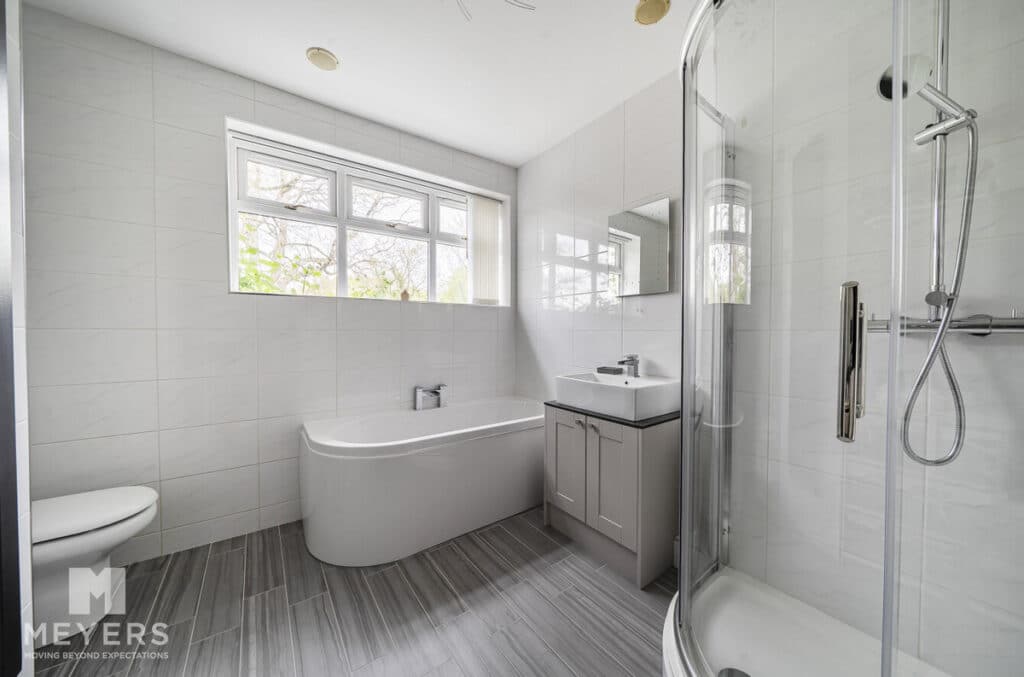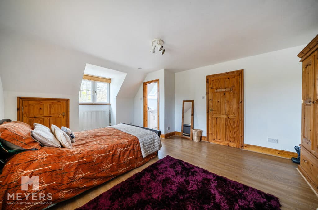 Upstairs, the principal bedroom benefits from a walk-in wardrobe, dressing room, and en-suite bathroom, enjoying pleasant views over the south-easterly facing garden, the further two bedrooms upstairs benefit from en-suites, one of which has a recently fitted Juliette balcony The property also boasts extensive storage solutions throughout, including multiple cupboards and under-eaves storage.