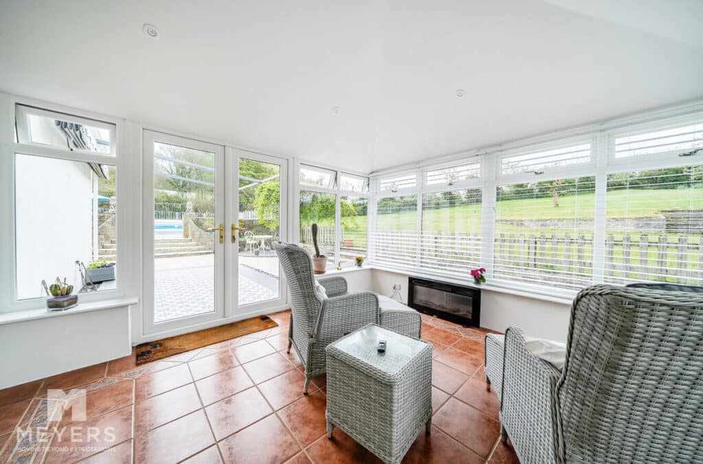Internally, the home is equally impressive. The entrance hallway and kitchen are finished with elegant travertine tiled flooring, setting the tone for the well-maintained and thoughtfully presented accommodation throughout. The ground floor offers a high degree of flexibility, featuring a range of reception and functional spaces including a snug, office, additional bedroom, utility room, spacious lounge, kitchen, dining room, and conservatory with solid roof. A further conservatory is attached to the double garage, offering additional adaptable space.