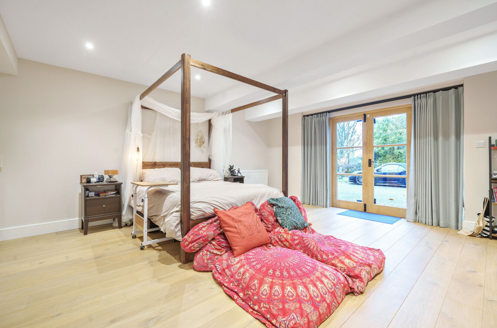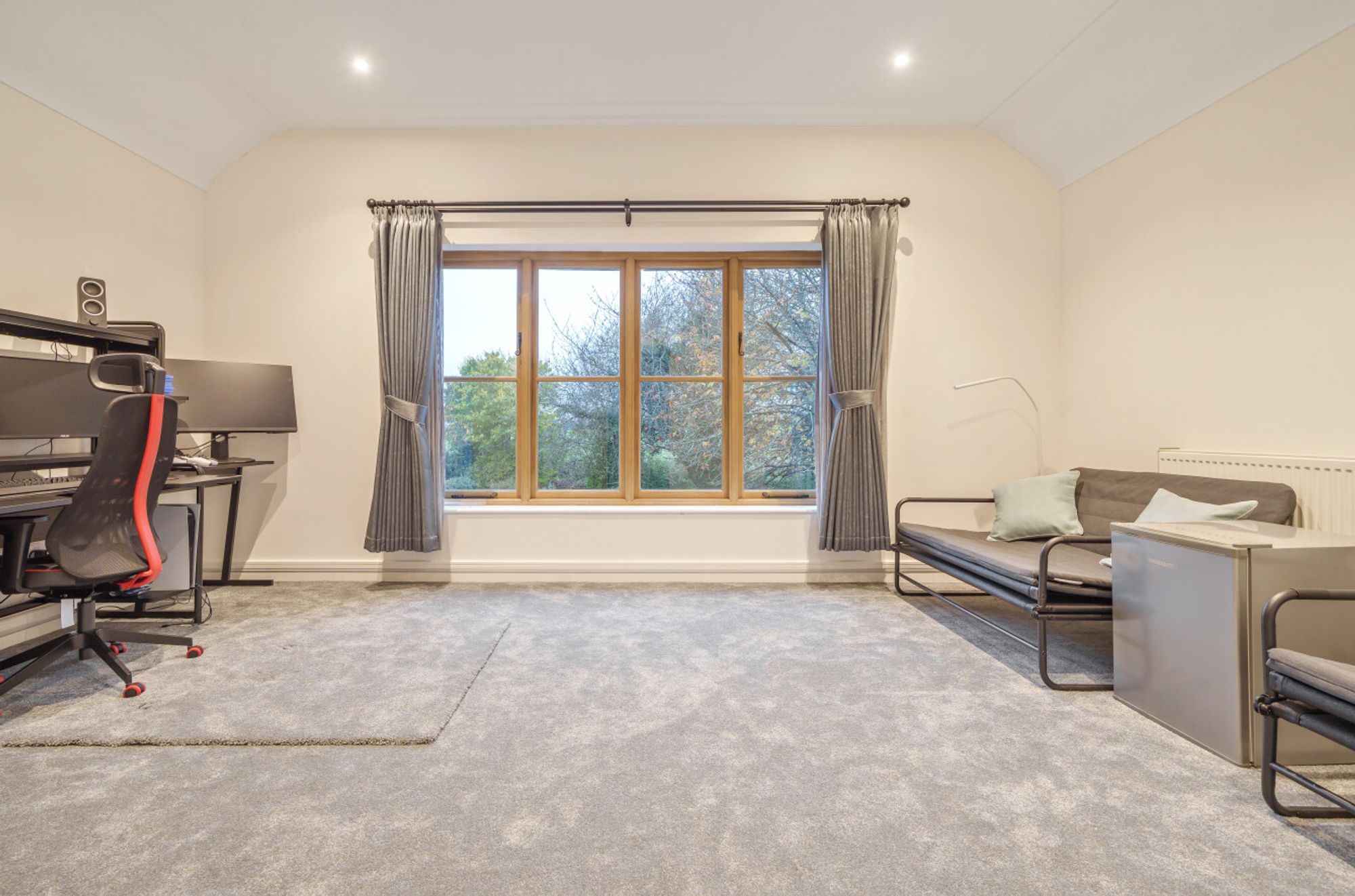 Going back into the hallway, you can find a well-appointed utility room as well as an impressive yoga room that could be a secondary living room, playroom or gym. A study and cloakroom complete the ground floor. Accessed through its own front door there is a charming self-contained annexe complete with its own en suite, kitchenette and walk-in-wardrove/ study room. Back in the main house you can climb the stairs to the first floor where you will find a calming and well-appointed principal bedroom suite complete with dressing room and en suite. There are four double bedrooms, two of which are served with en suite shower rooms and a family bathroom.
