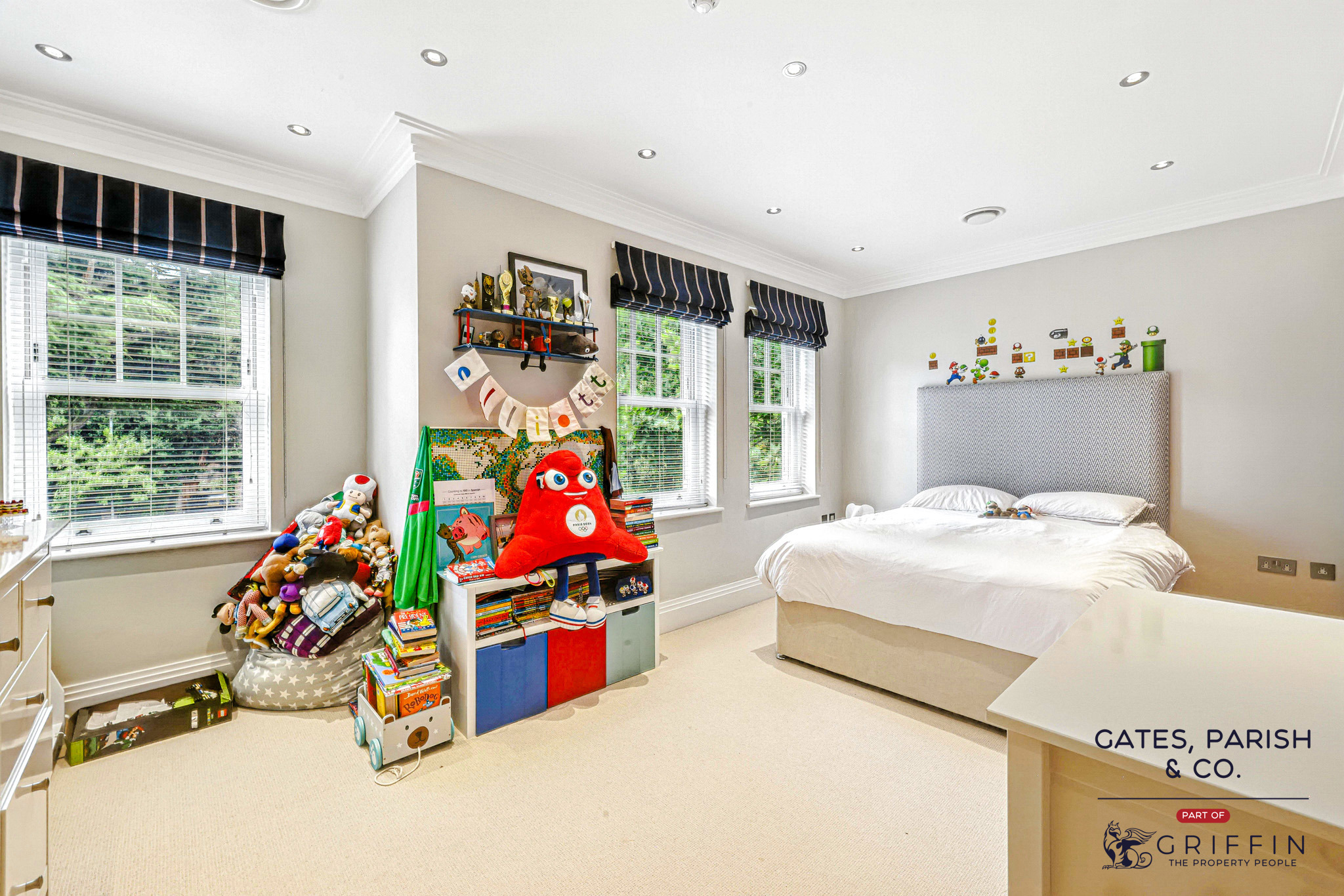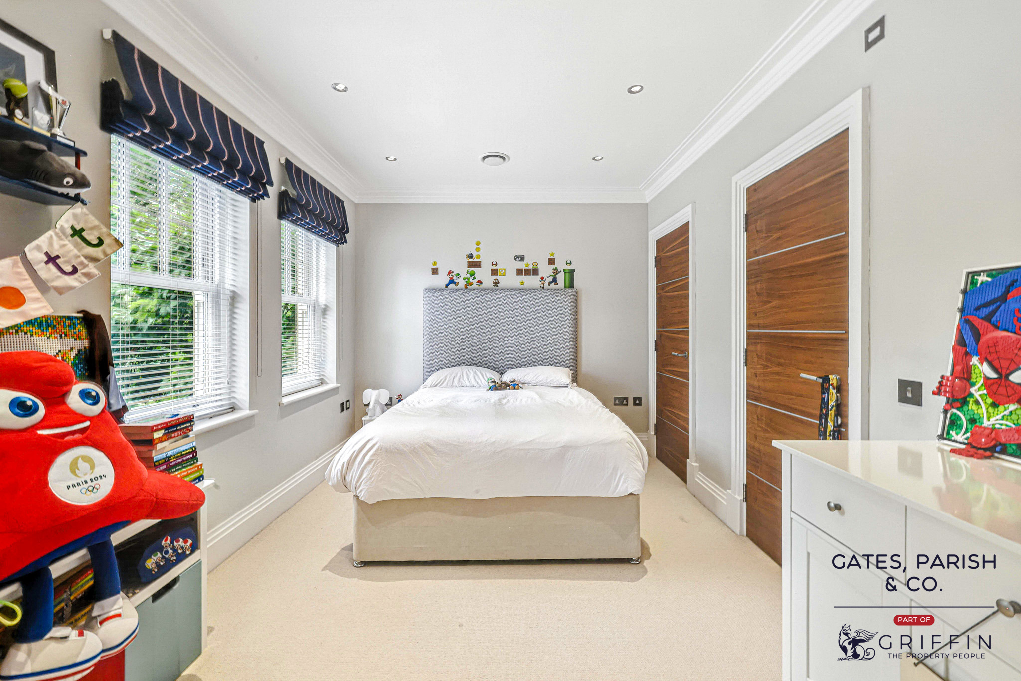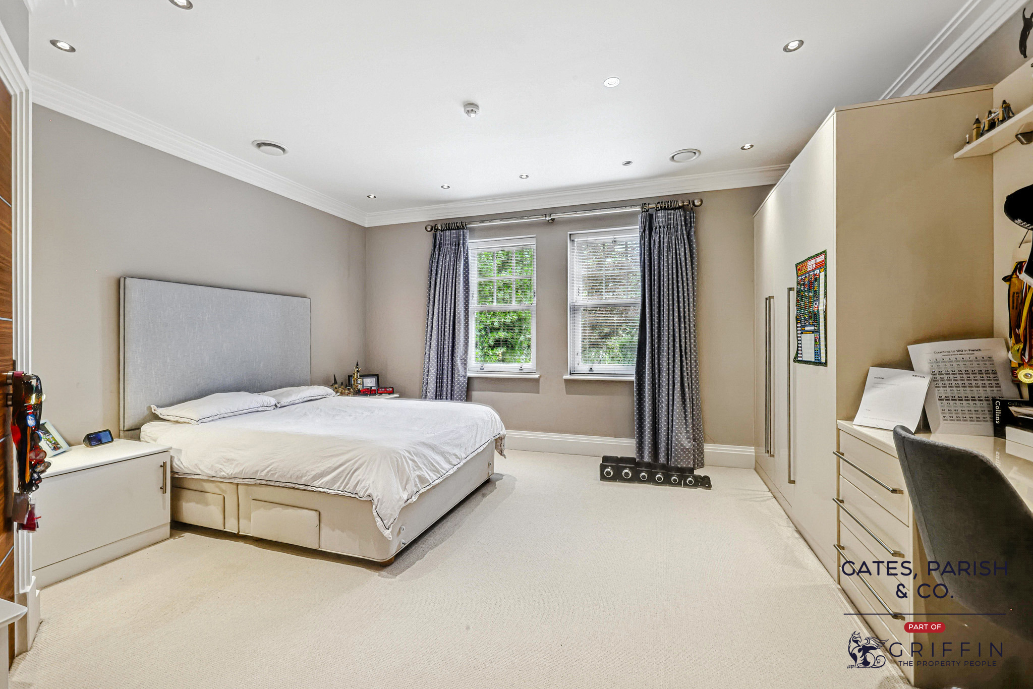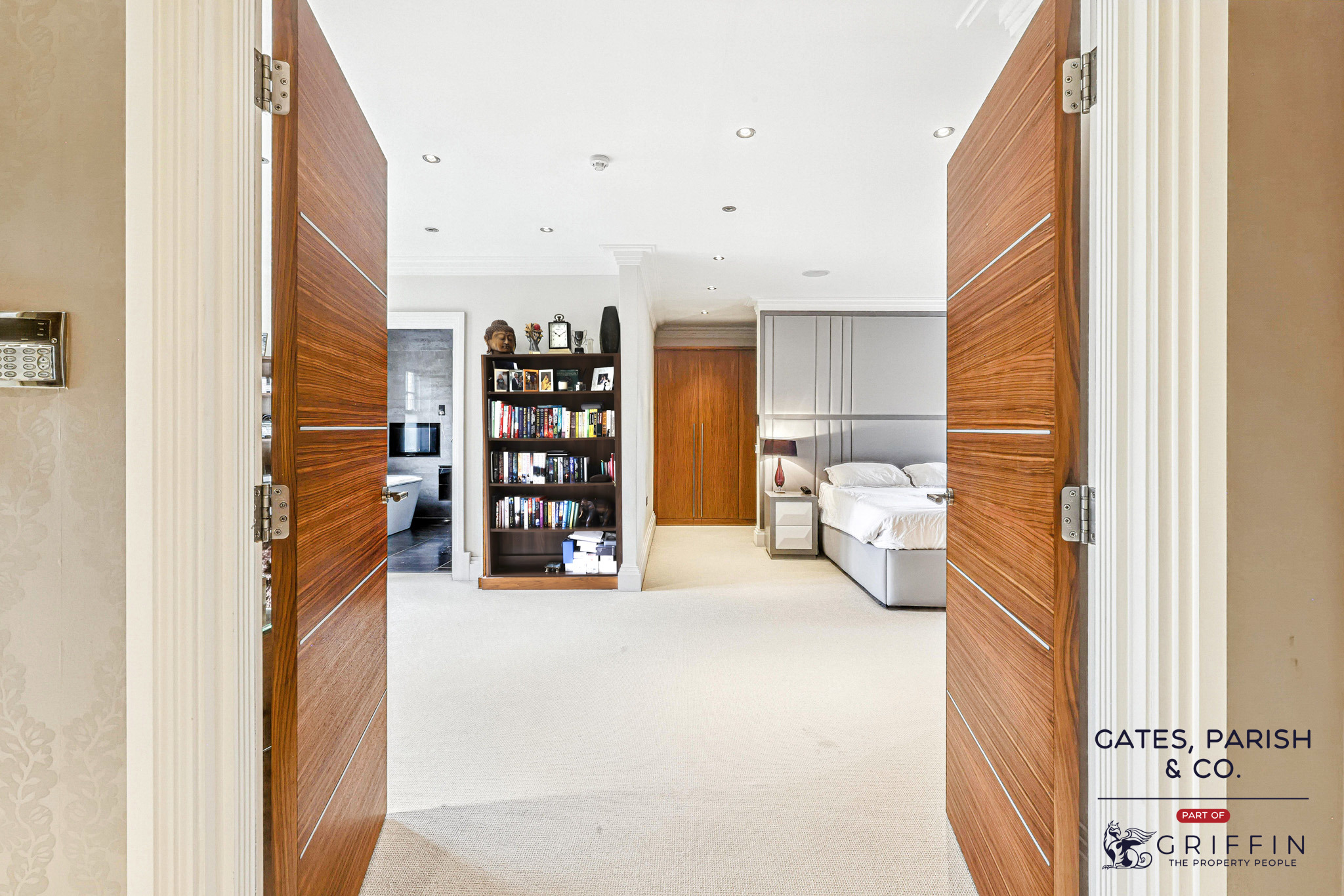 The indoor leisure complex is a standout feature, comprising a heated swimming pool, jacuzzi, sauna, and dedicated bathroom and changing facilities, offering year-round wellness and relaxation. On the first floor, the grand principal bedroom suite provides an exquisite retreat, complete with a private balcony, dressing area, and beautifully appointed en-suite bathroom. This floor also includes three further bedrooms with their own en-suites, a large double bedroom, and an additional stylish bathroom. The second floor offers two more bedrooms?currently used as home office spaces?a gym area with floor-to-ceiling glazing overlooking the gardens, a utility room, and a further bathroom, delivering remarkable flexibility for a modern lifestyle.