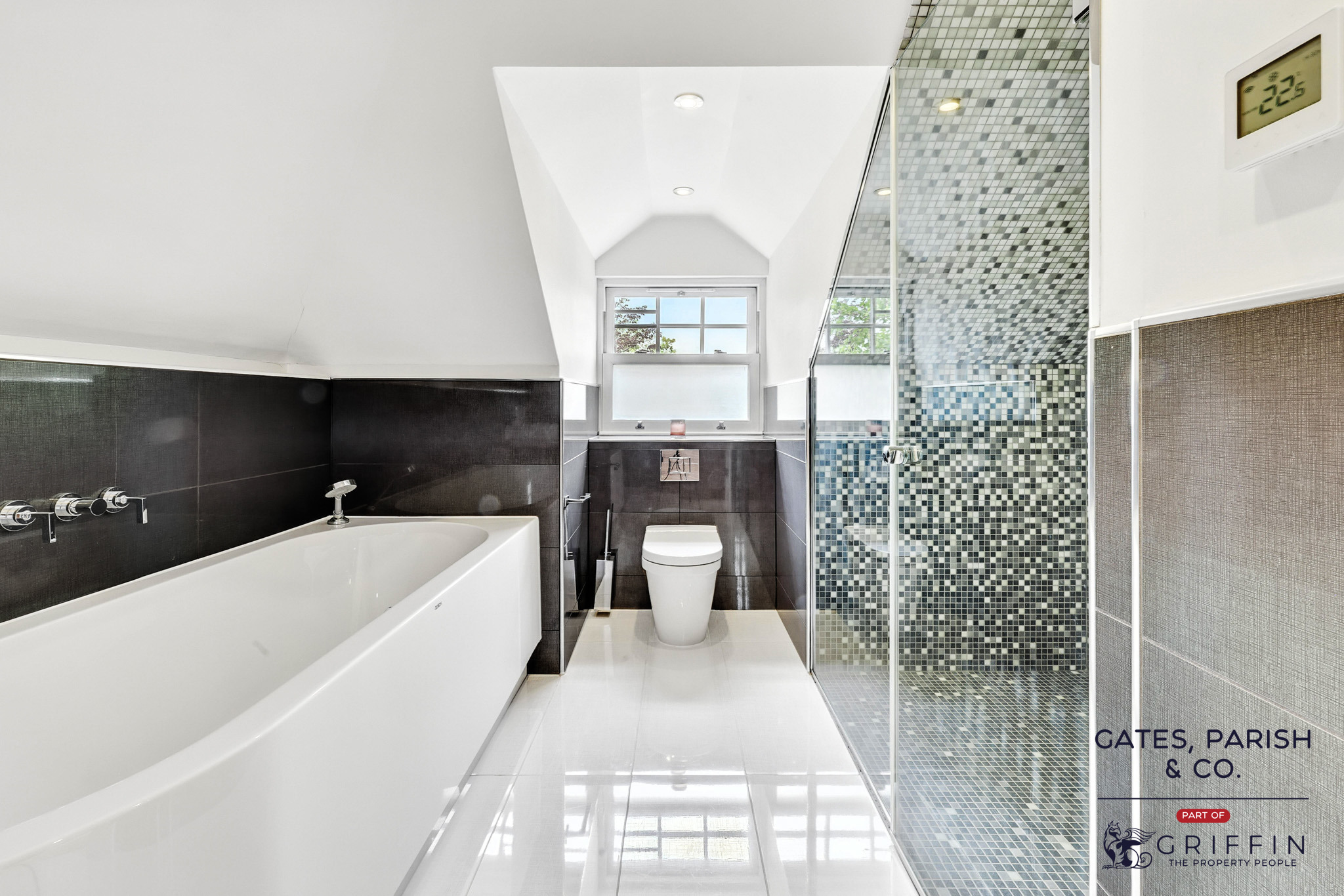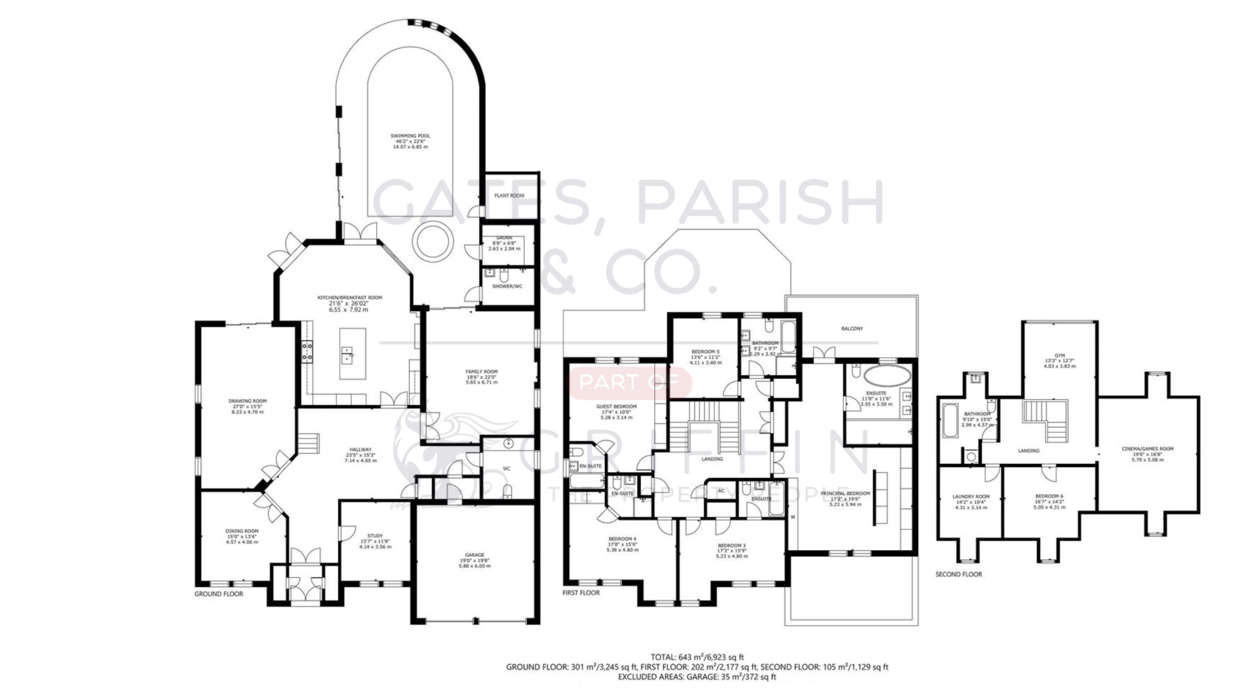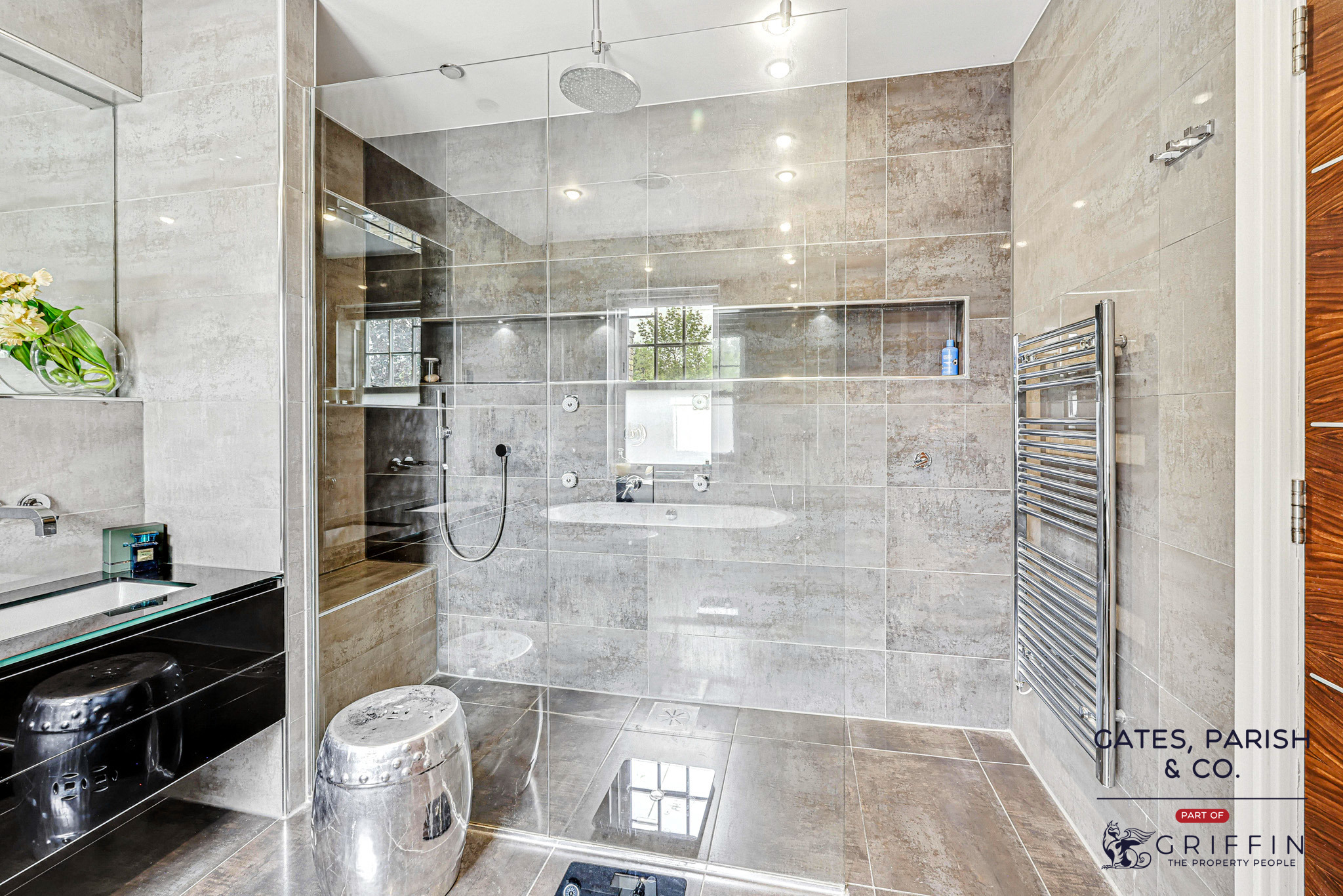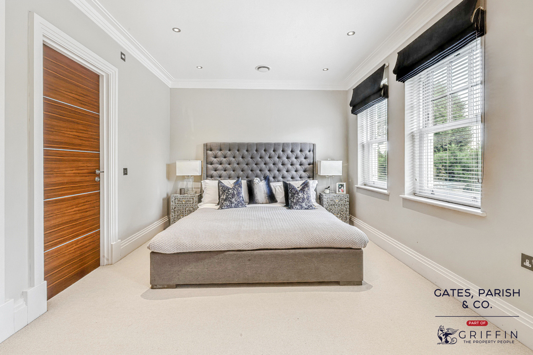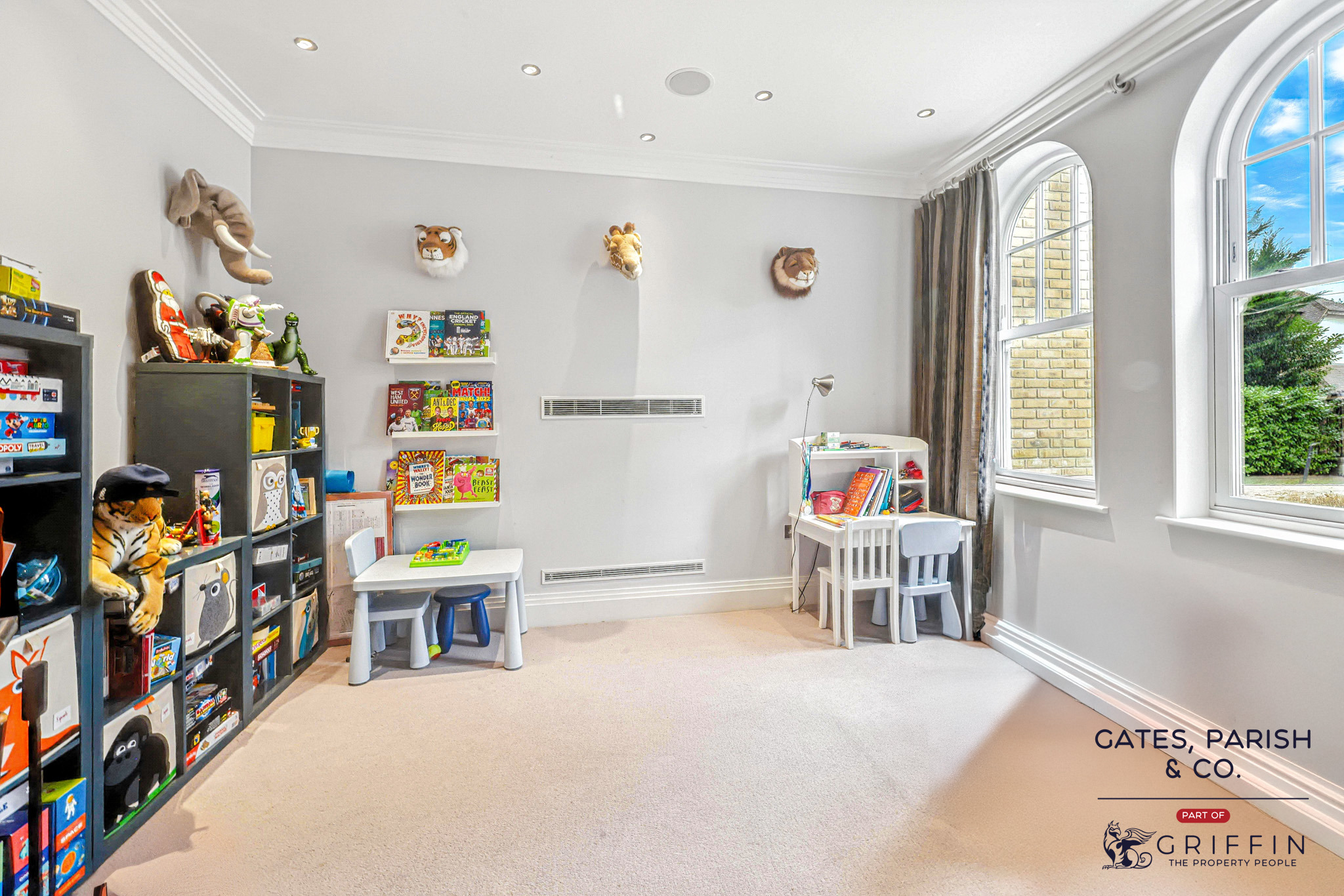 The indoor leisure complex is a standout feature, comprising a heated swimming pool, jacuzzi, sauna, and dedicated bathroom and changing facilities, offering year-round wellness and relaxation. On the first floor, the grand principal bedroom suite provides an exquisite retreat, complete with a private balcony, dressing area, and beautifully appointed en-suite bathroom. This floor also includes three further bedrooms with their own en-suites, a large double bedroom, and an additional stylish bathroom. The second floor offers two more bedrooms?currently used as home office spaces?a gym area with floor-to-ceiling glazing overlooking the gardens, a utility room, and a further bathroom, delivering remarkable flexibility for a modern lifestyle.