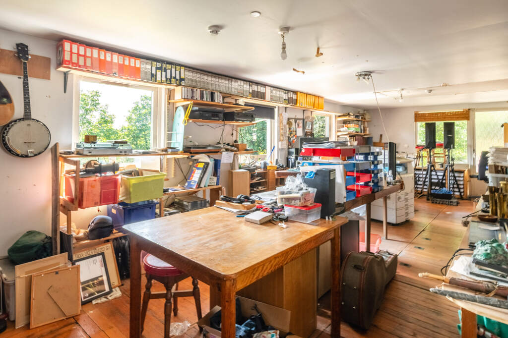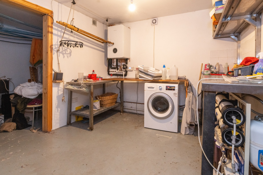 To the lower ground floor is a generous utility room which has a laundry chute with the first opening on the top floor, one on the first floor and another on the ground floor. There is a workshop, separate office, wc and internal access to the garage.