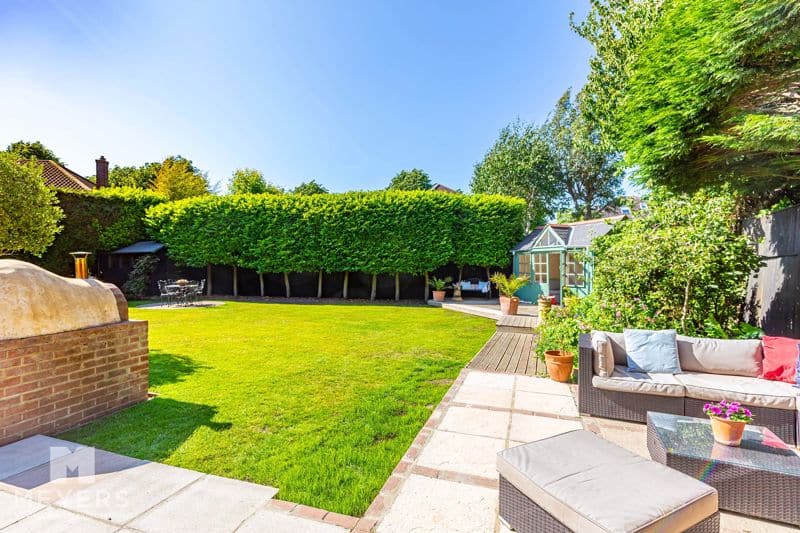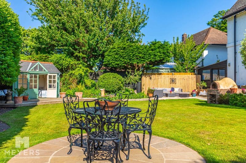 This exceptional outdoor space provides an ideal extension of the home, perfect for entertaining, family gatherings, or quiet moments taking in the garden vista.