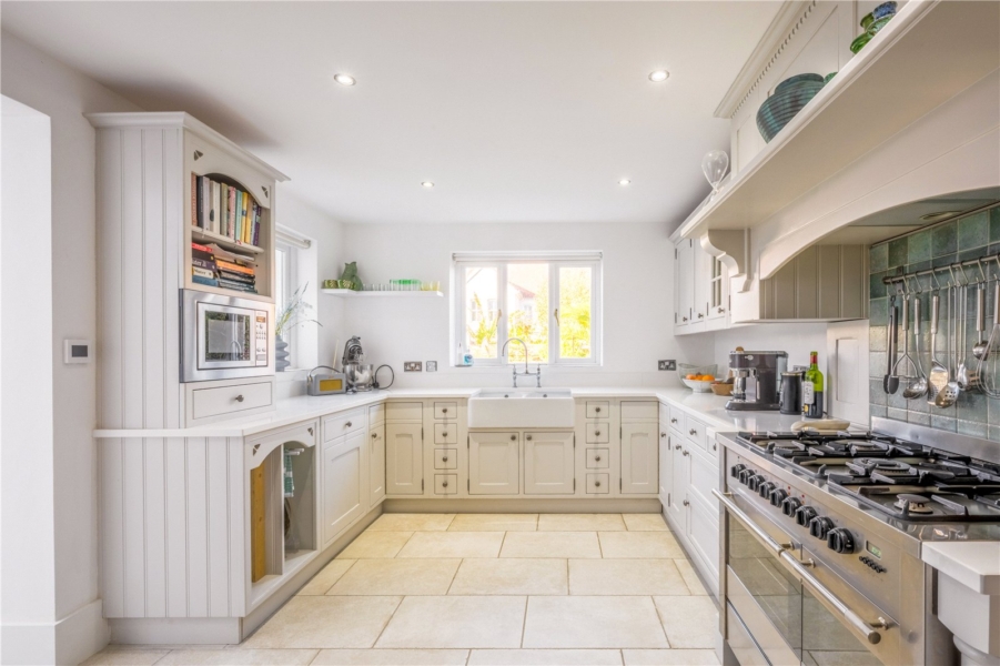 The principal living room is at the front of the house with stylish sash windows and traditional fireplace. Over the hallway is another reception room which could be either a perfect home office or formal dining area. The second reception room in the middle of the house is a wonderful place to unwind after a long day and has another fireplace to enjoy. The flow of the downstairs is impressive with the second reception room leading to the spacious garden room, full of light and overlooking the west facing garden this room will be a lovely space in the summer. The kitchen which is finished to a really high standard is also at the rear of the property and therefore also overlooks the large rear garden. In the kitchen is an impressive log burner for the winter months. Just off the kitchen is a utility room with a side door leading to the garden or the driveway.