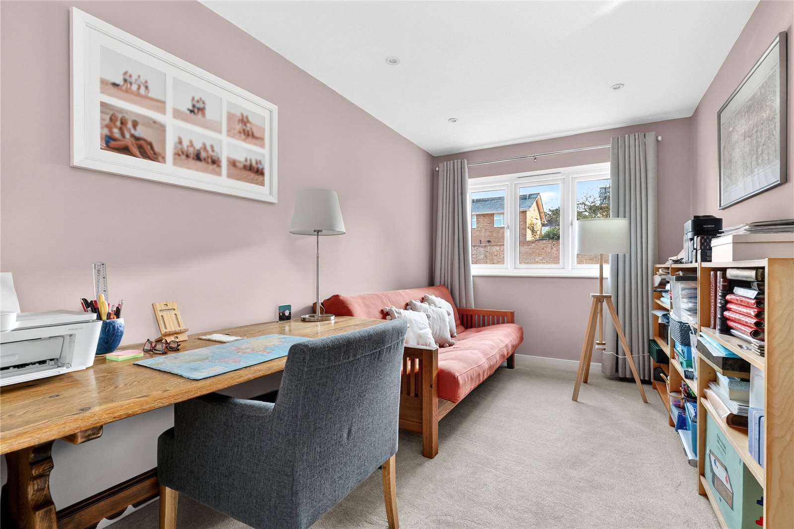 Despite its tucked-away position, the home enjoys a highly convenient lifestyle location. It is an easy and pleasant walk into the local village, where a selection of independent coffee shops, restaurants and everyday amenities can be enjoyed. Excellent transport links are also close by, with the nearby train station providing direct services into London, making this an ideal home for commuters. The property also falls within desirable school catchment areas, further enhancing its appeal.