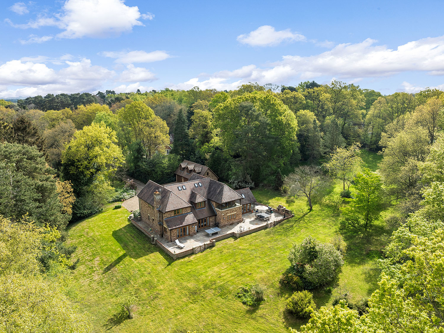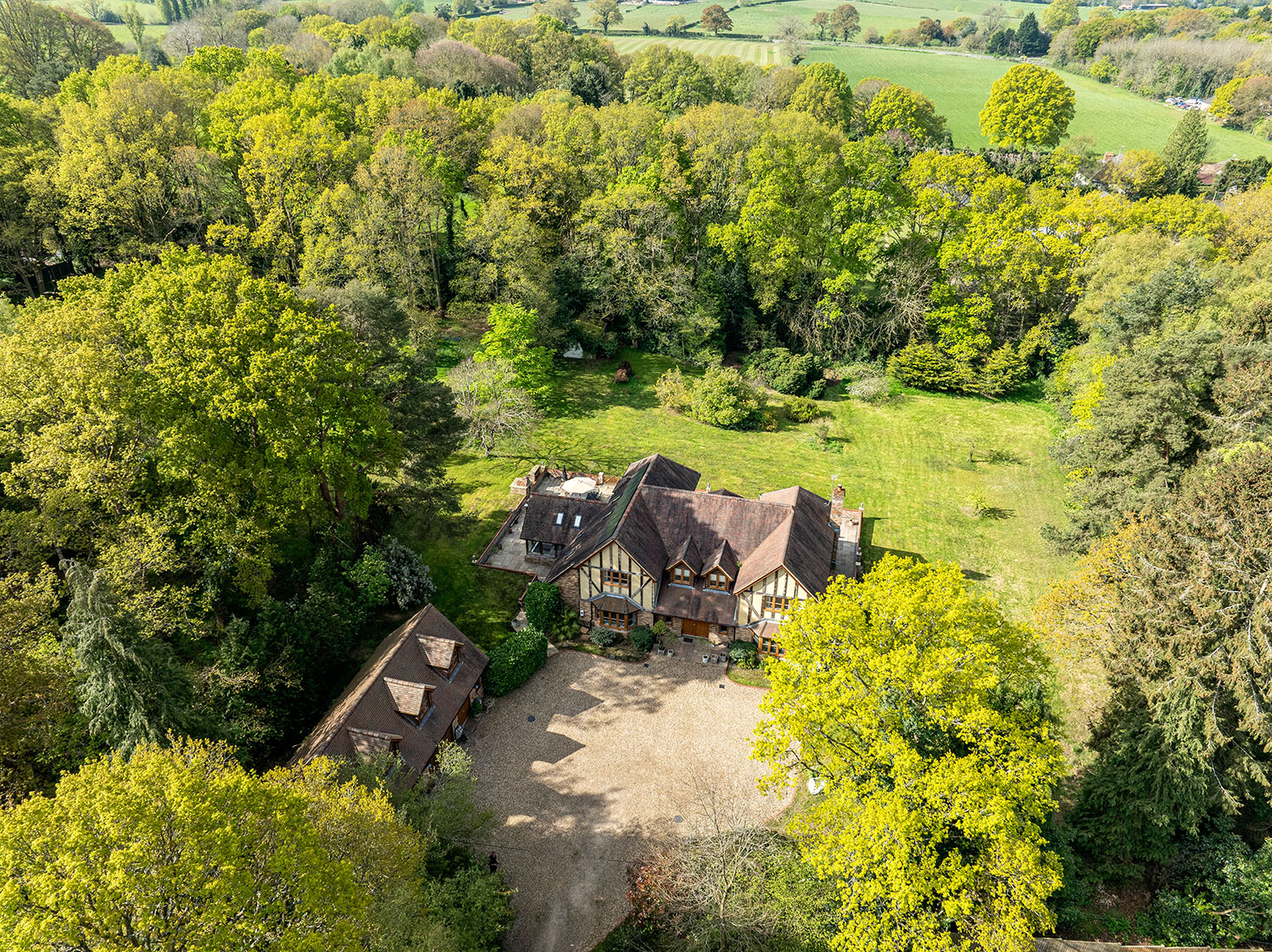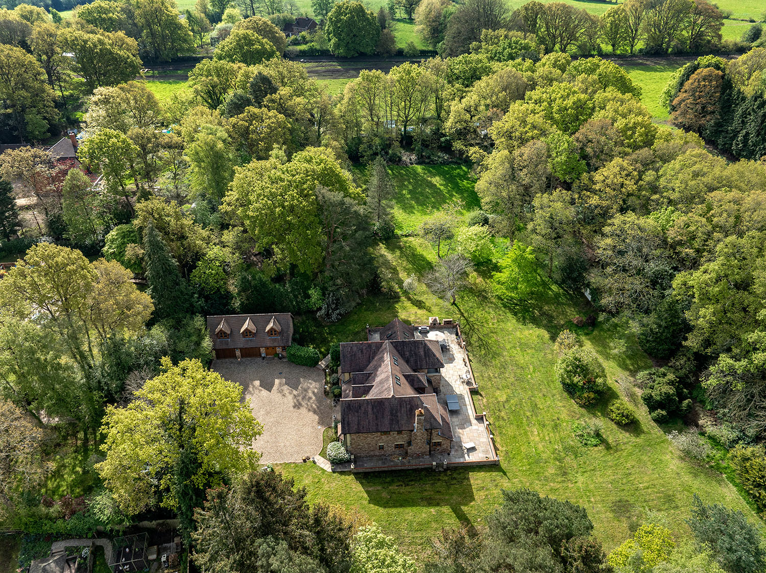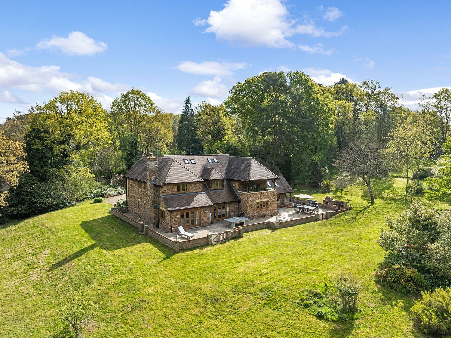 Welcome to Chandlers Cottage. Situated on a peaceful residential lane in the village of Finchampstead, surrounded by woodland and enclosed with complete privacy, this exquisite, detached residence constructed in 2015 boasts over 5000 sq. ft. of impeccably designed living space, enabling the owners to enjoy its perfect blend of seclusion, sophistication and comfort, ideal for family living at its very best.