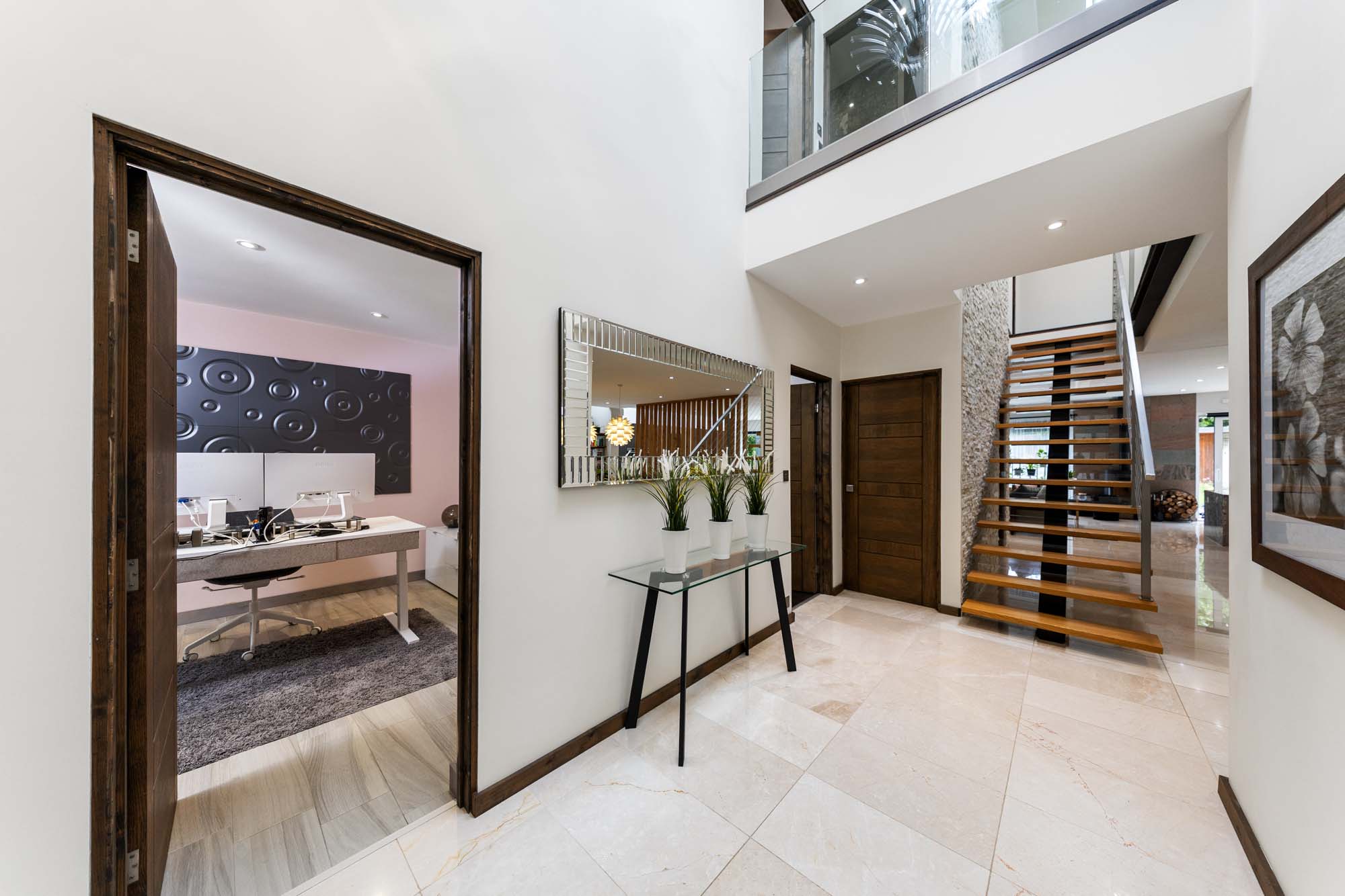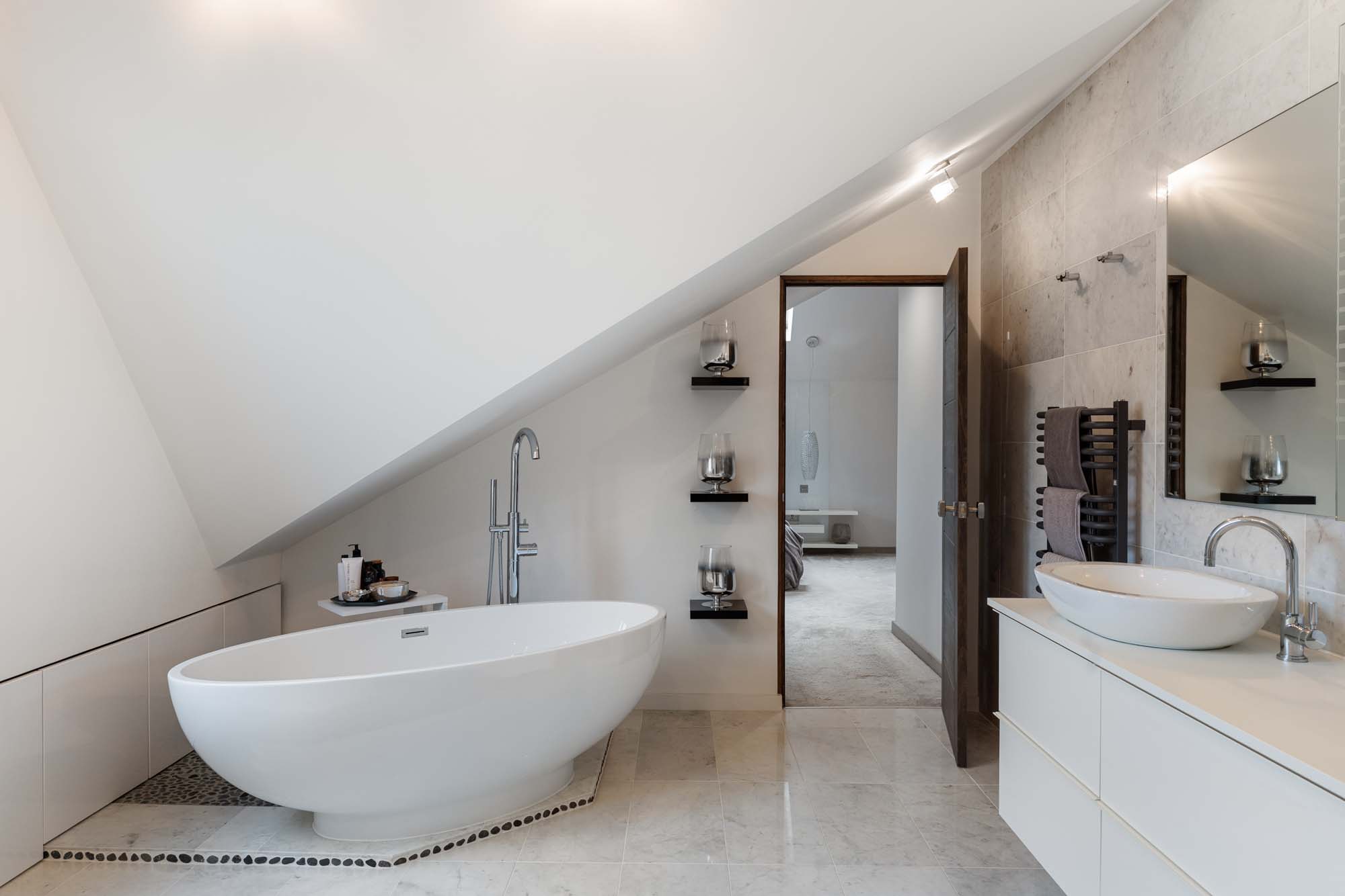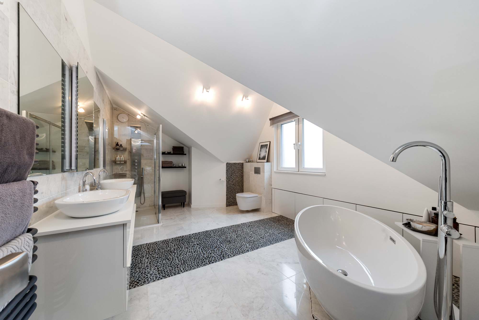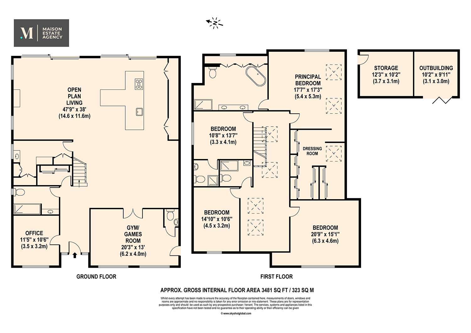 A vast and bright, open plan kitchen, dining and living area perfect for entertaining and family living, featuring a large kitchen with ample storage, a utility room, and multiple reception areas including a gym/games room and an office.