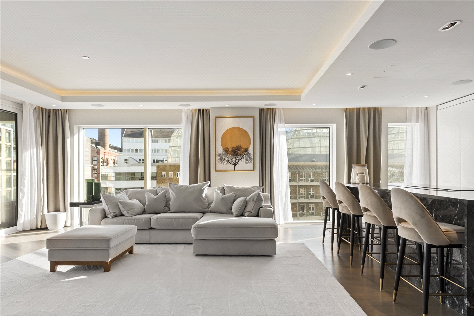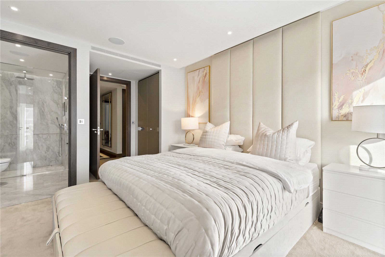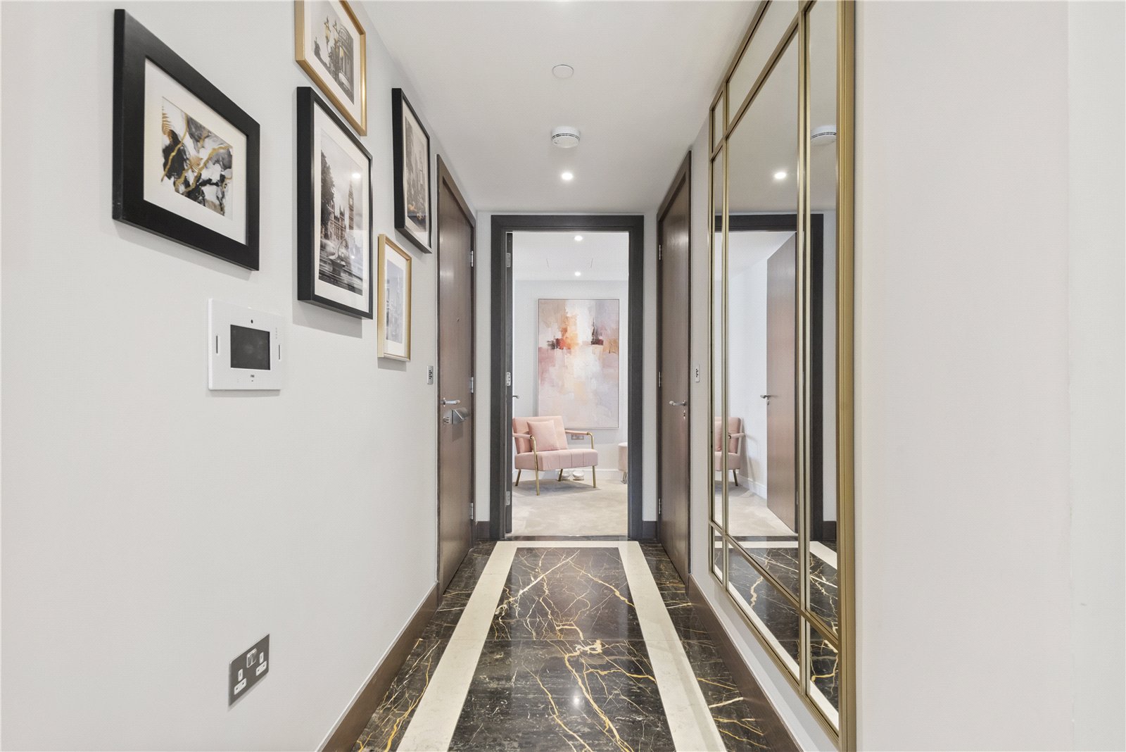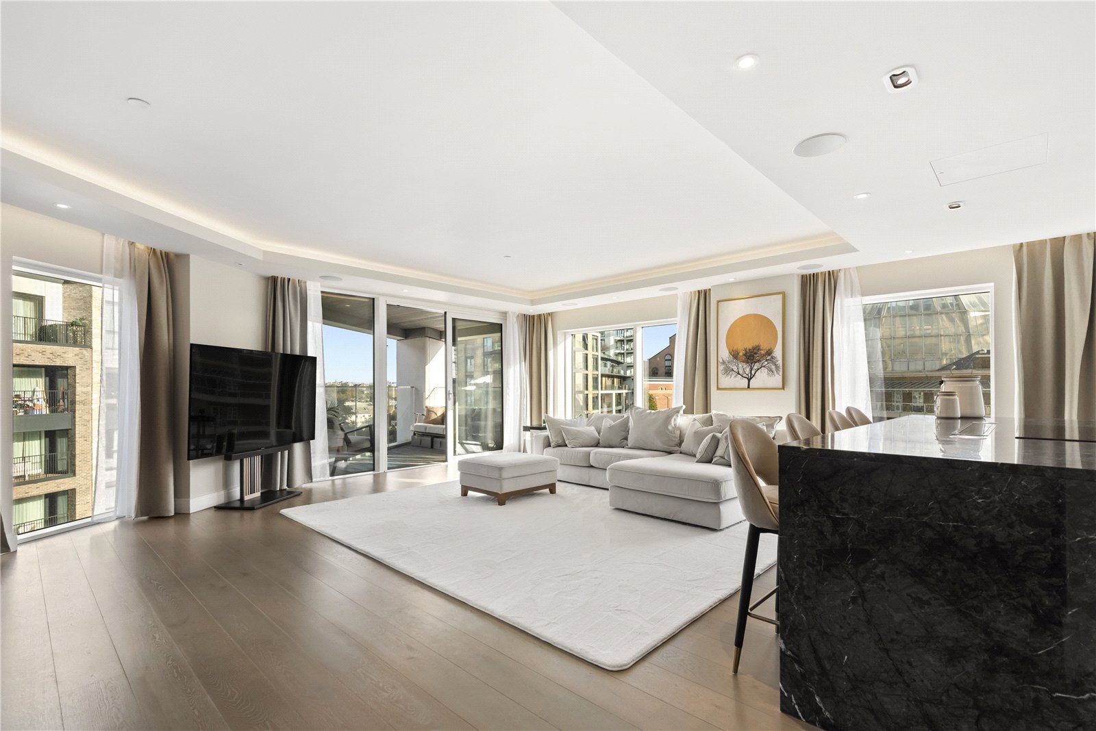 The apartment comprises of two large double bedrooms, one of which comes with a large marble ensuite bathroom. A family bathroom is entered from the hallway and at the end of the hallway you enter an impressive 910sqft open plan kitchen / reception area with access to a balcony.