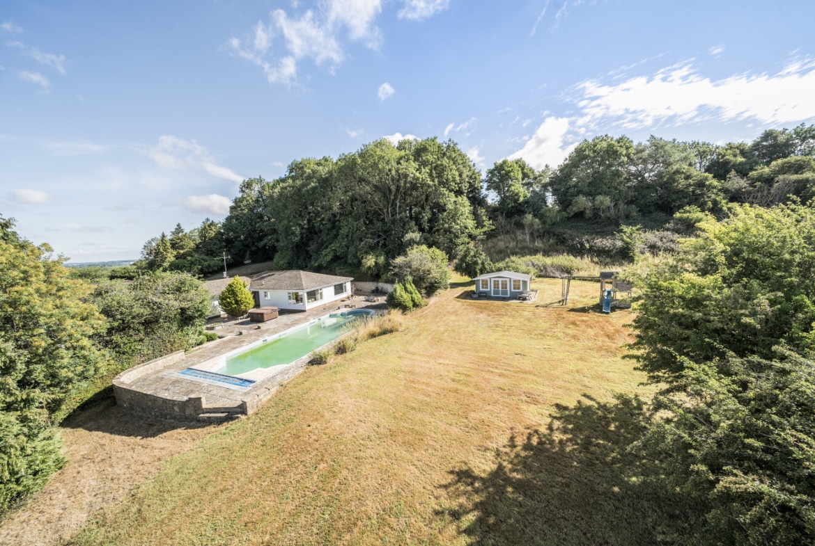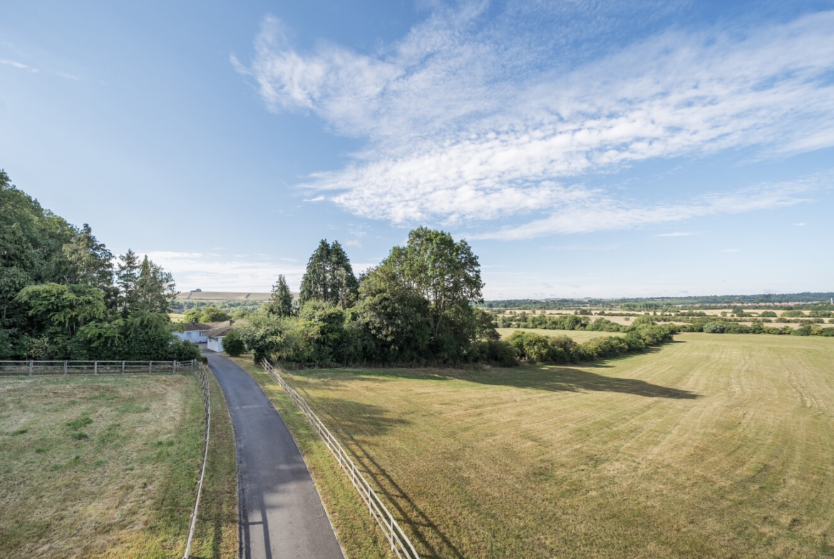 Accessed via a private driveway, the home enjoys complete seclusion and panoramic views across Liddington Hill and the surrounding Wiltshire countryside.
