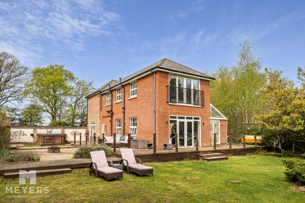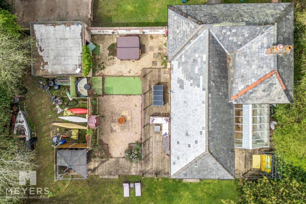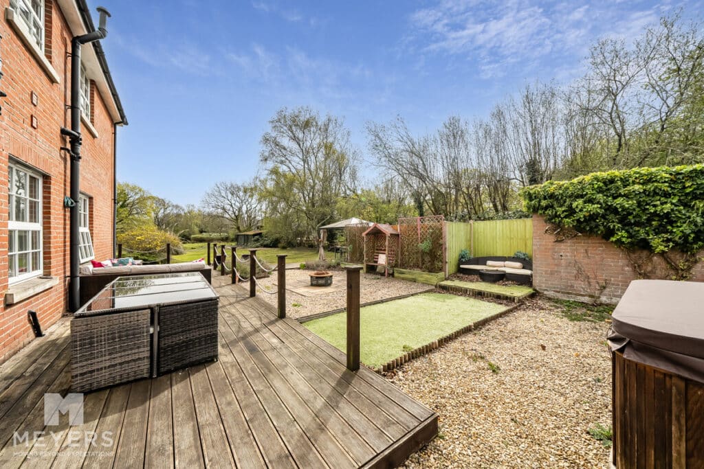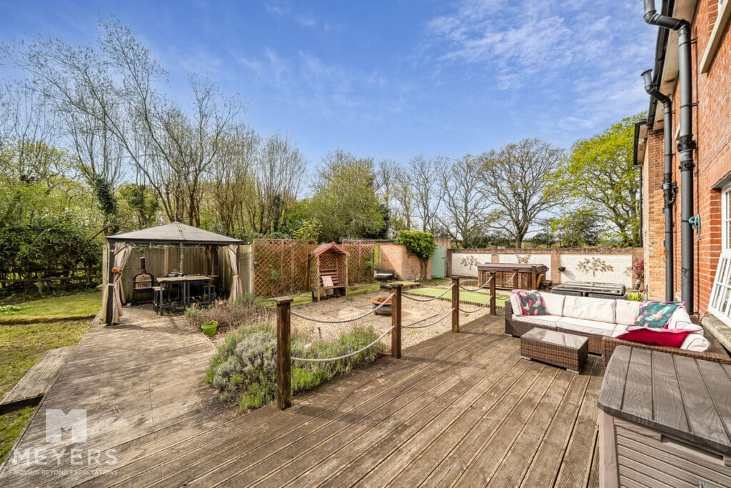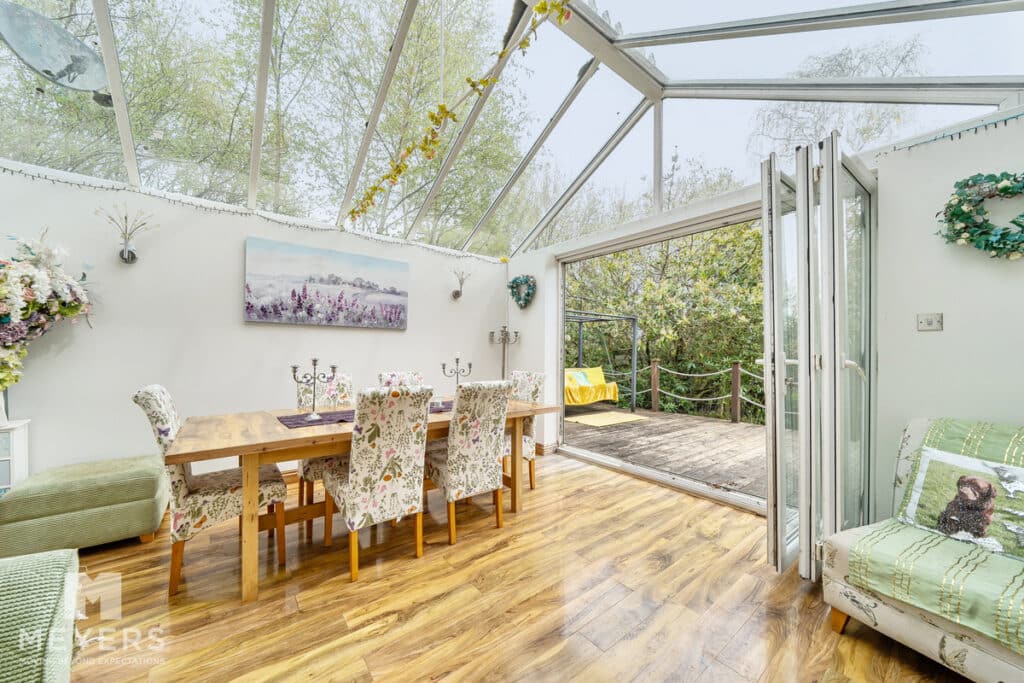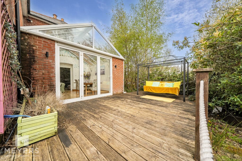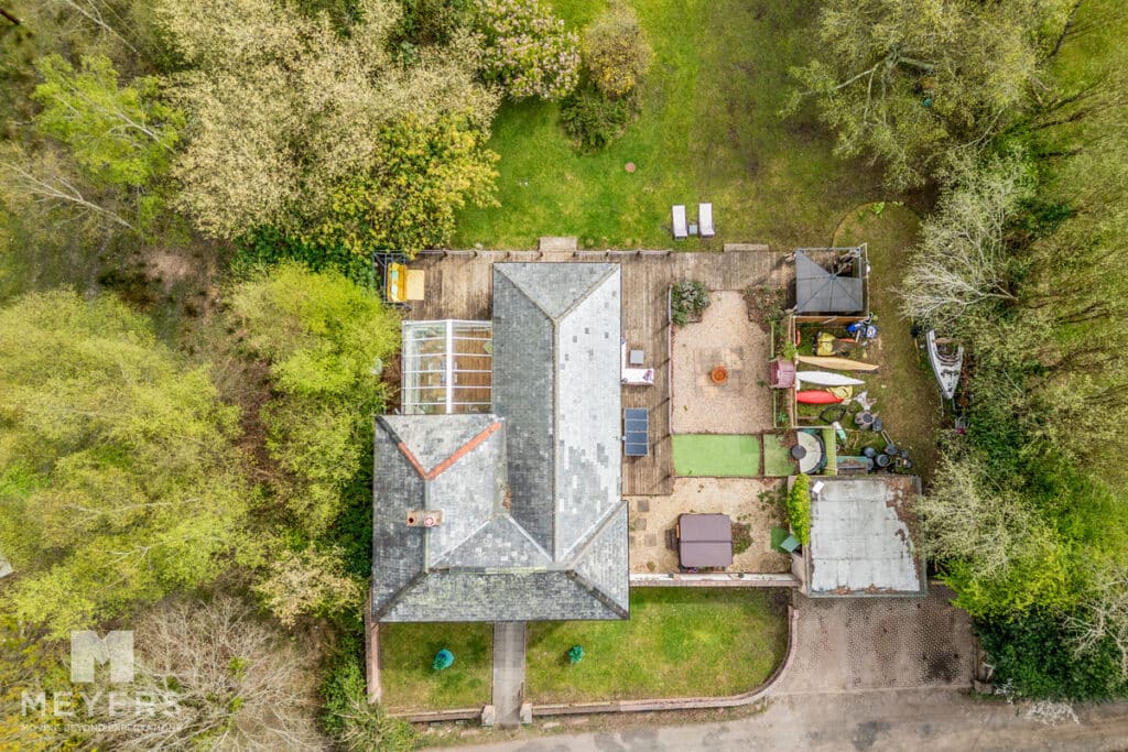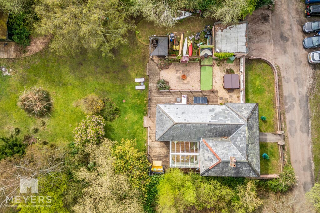 Outside - The grounds extend to 0.8 acres and are laid to lawn with a variety of trees and shrubs. Decking wraps around from the conservatory and along the side garden creating a perfect entertaining area and a private, tranquil sun trap. The current garage has planning permission to extend it to a gross footprint of 5.2m x 4.5m. The drive, with side gates, has ample parking for several vehicles. Additionally, there is a large summer lodge (11.5mx 4.5m) with power and water connected, complete with wc and wash hand basin, ideal for guests or as a home and income.
