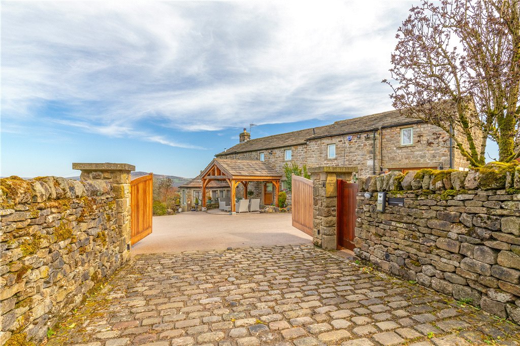 To the outside, the property is accessed from a private lane shared by just two properties. Electric gates provide access to Lower White Well Barn where there is ample driveway parking and access to the large double garage. Beyond the drive to the northern aspect, landscaped tiered gardens lead down through a number of planted, lawned, and seating areas to a beck, whilst immediately to the front of the property is a large, paved seating area with substantial solid oak pergola providing the ideal place for late-afternoon/evening entertaining. To the rear of the property and to the southern aspect are some of the most attractive long-reaching views, where there are a number of paved seating areas, established planting and a path leading round to the rear of the property.