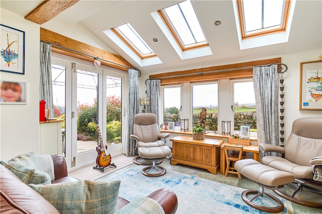 Nestled in this idyllic rural location is this most attractive barn conversion featuring beautifully appointed accommodation set within private landscaped gardens and enjoying stunning far-reaching views across Wharfedale.