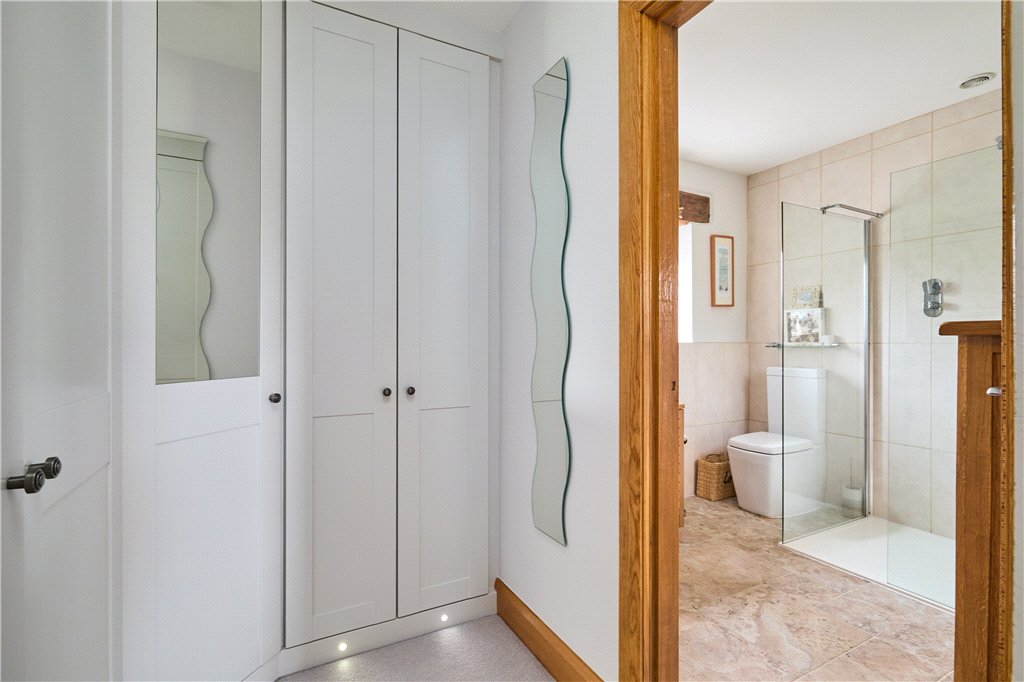 Stairs from the dining hall lead to the first floor, where a galleried landing area provides a pleasant seating or reading area, leading to the master bedroom suite which enjoys some fantastic views and the luxury of a dressing area and ensuite shower room. There are two further double bedrooms, one of which with ensuite shower room, and two single bedrooms, the smaller of which is currently used as a dressing room. There is also a modern house bathroom with separate shower.