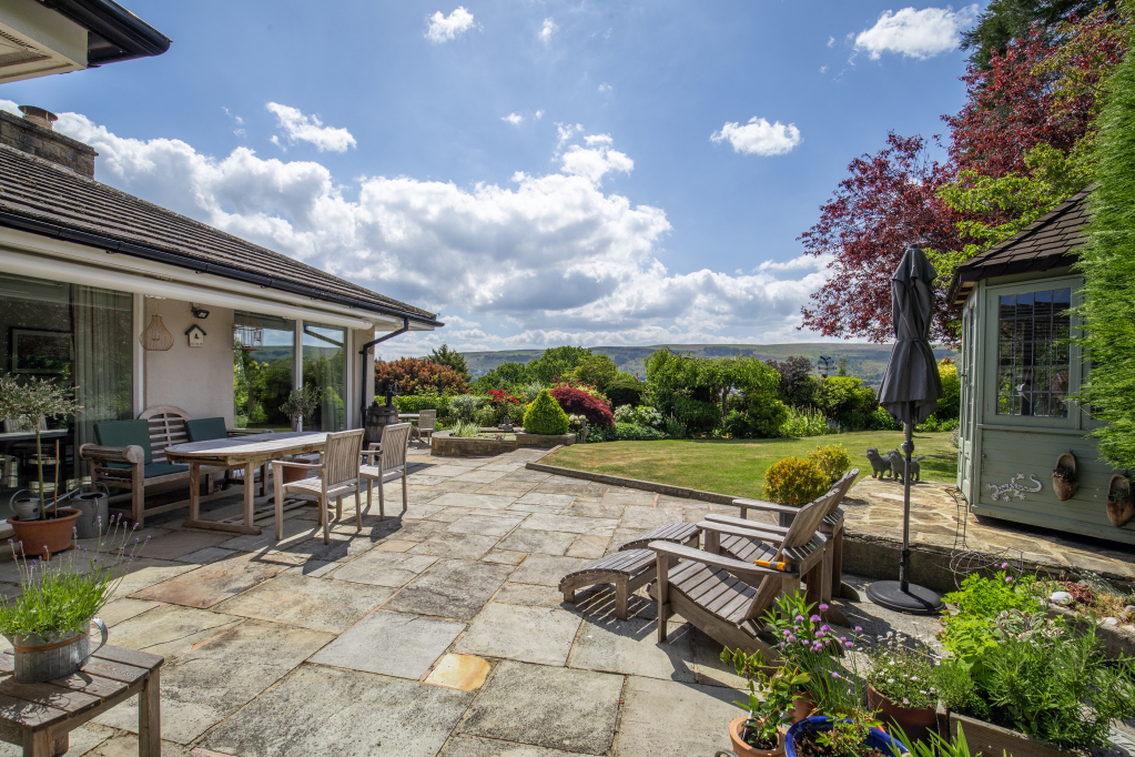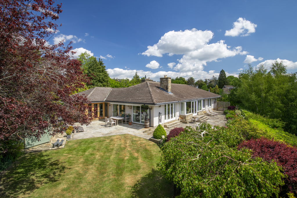 An outstanding modern home offering generously proportioned living, principally across a single floor, but with a discreetly positioned lower-level guest suite. Attractive and mature grounds including lawns and an expansive terrace with breathtaking views across Wharfedale.