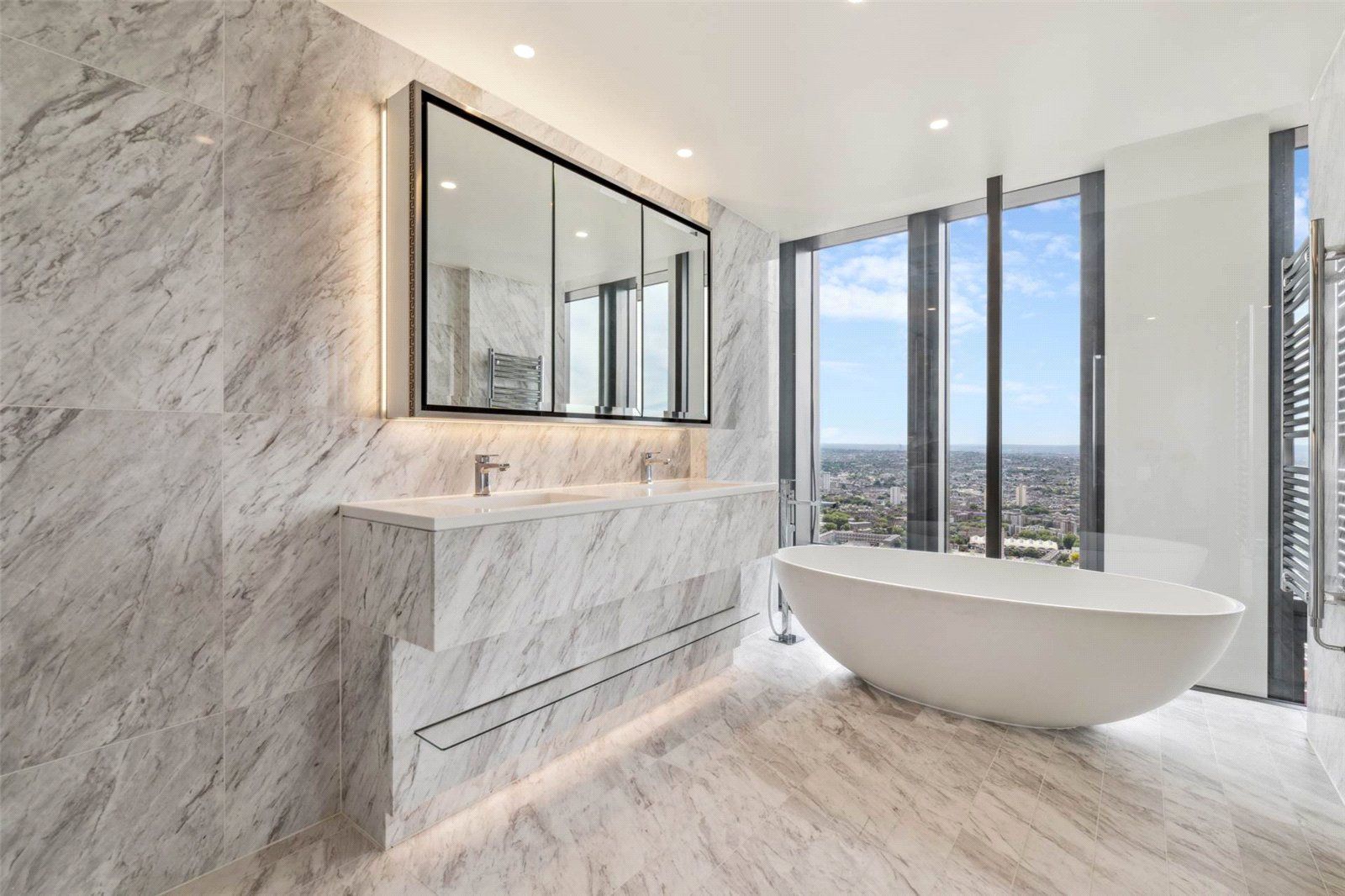 The Jewel in the Crown of this first class development located moments from the American Embassy in Nine Elms. This phenomenal Penthouse positioned on the 49th and 50th floors, benefits from absolutely sensational views over the Thames and London's skyline.