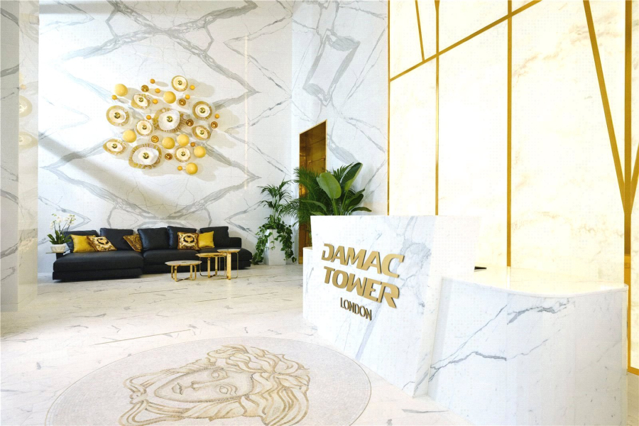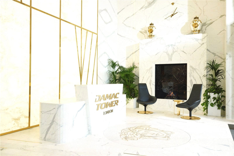 A peaceful ambience greets you as you enter the lobby at DAMAC Tower, Nine Elms, London. Beautifully polished details, from the high-gloss marble floor and plush Versace Home chairs, to the friendly staff and fresh flowers; your entrance to the building perfectly sets the scene. The lobby is an elegant space that’s bright on sunny days while being intimate and cosy during the winter months.