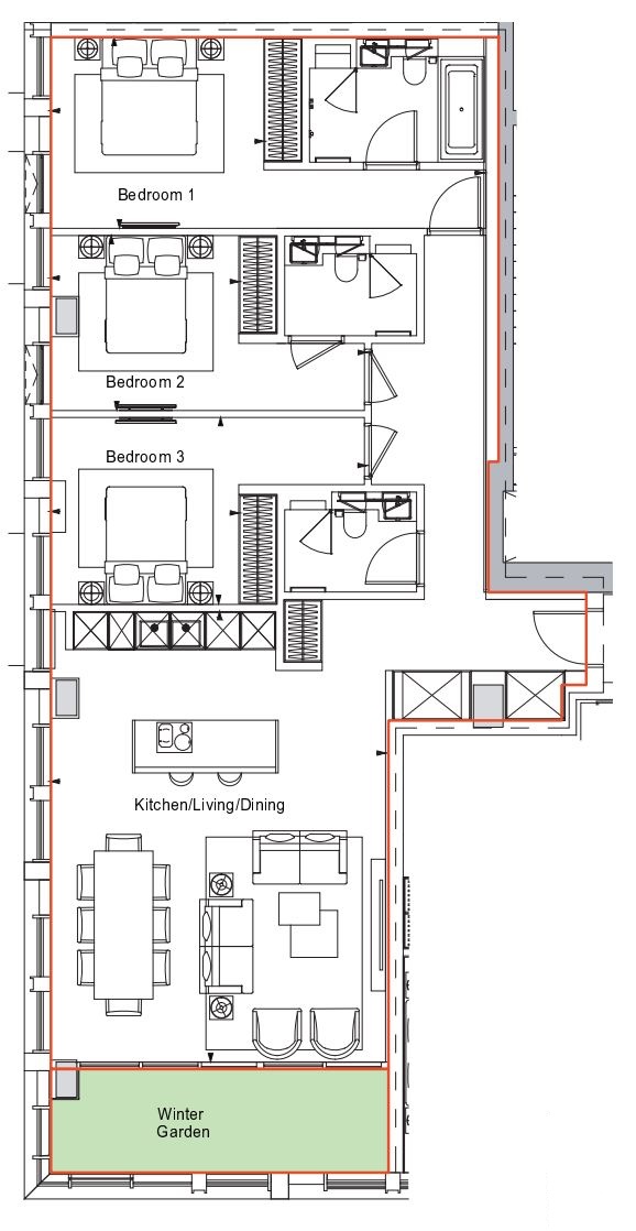 This 43rd floor, 1459 sq. ft, three bedroom, three bathroom apartment offers stunning views and will be interior designed to the highest standards by Versace Home and includes a wonderful winter garden.