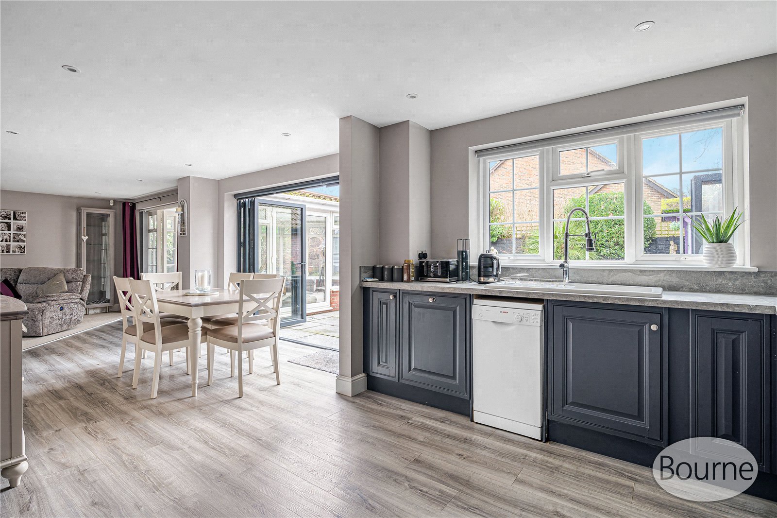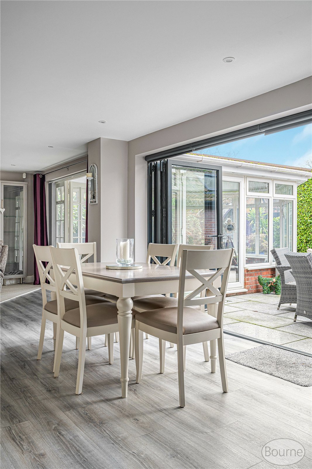 Moving through the house, the kitchen and dining area forms the central hub of the home, offering generous space for family life. This opens into the conservatory at the rear, creating an additional reception area that enjoys views over the garden and works well as a relaxed sitting or dining space.