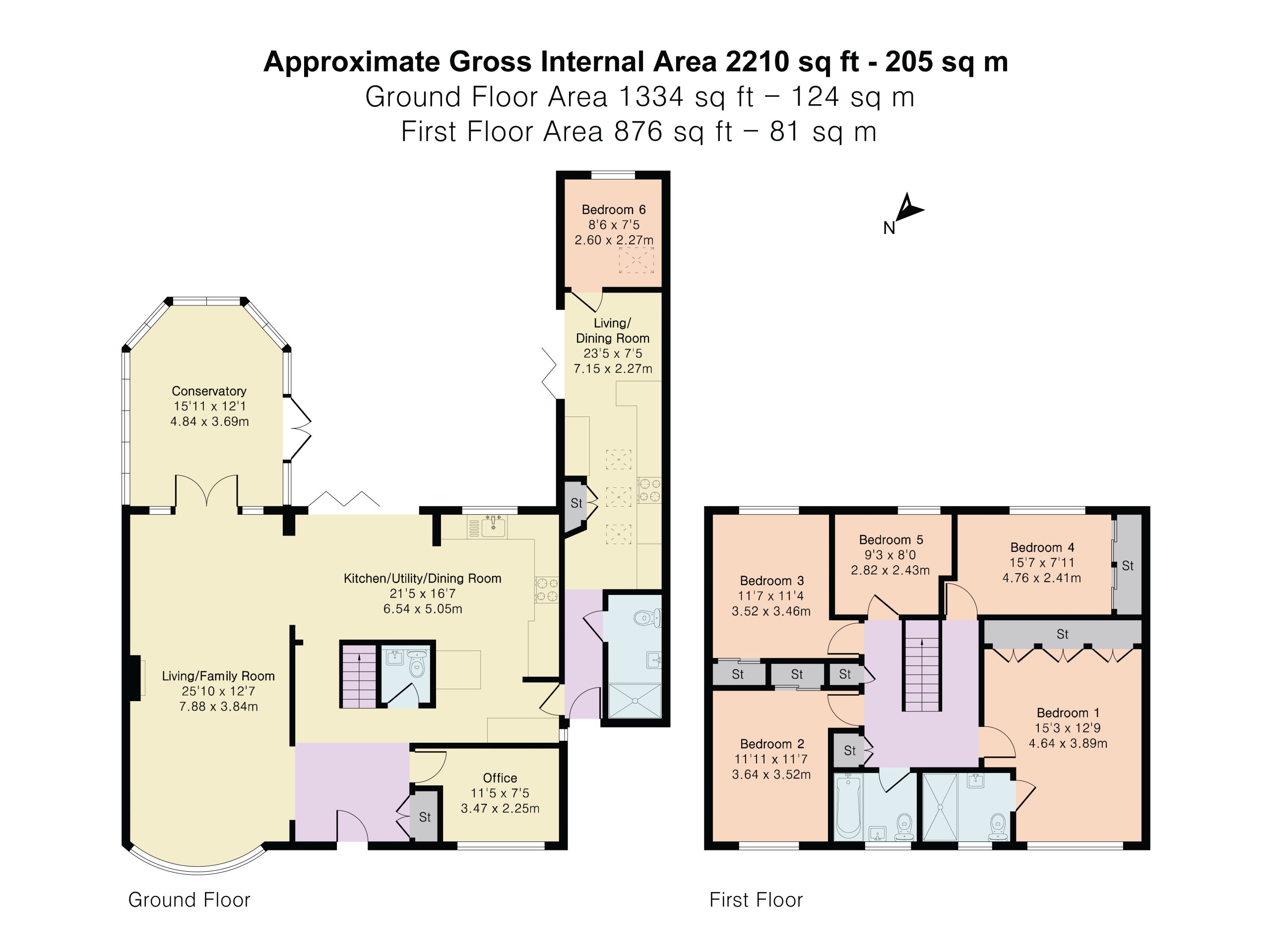 The first floor is arranged around a central landing and provides five further bedrooms, including a well-proportioned principal bedroom. The remaining rooms offer excellent versatility, supported by a family bathroom and an additional shower room.