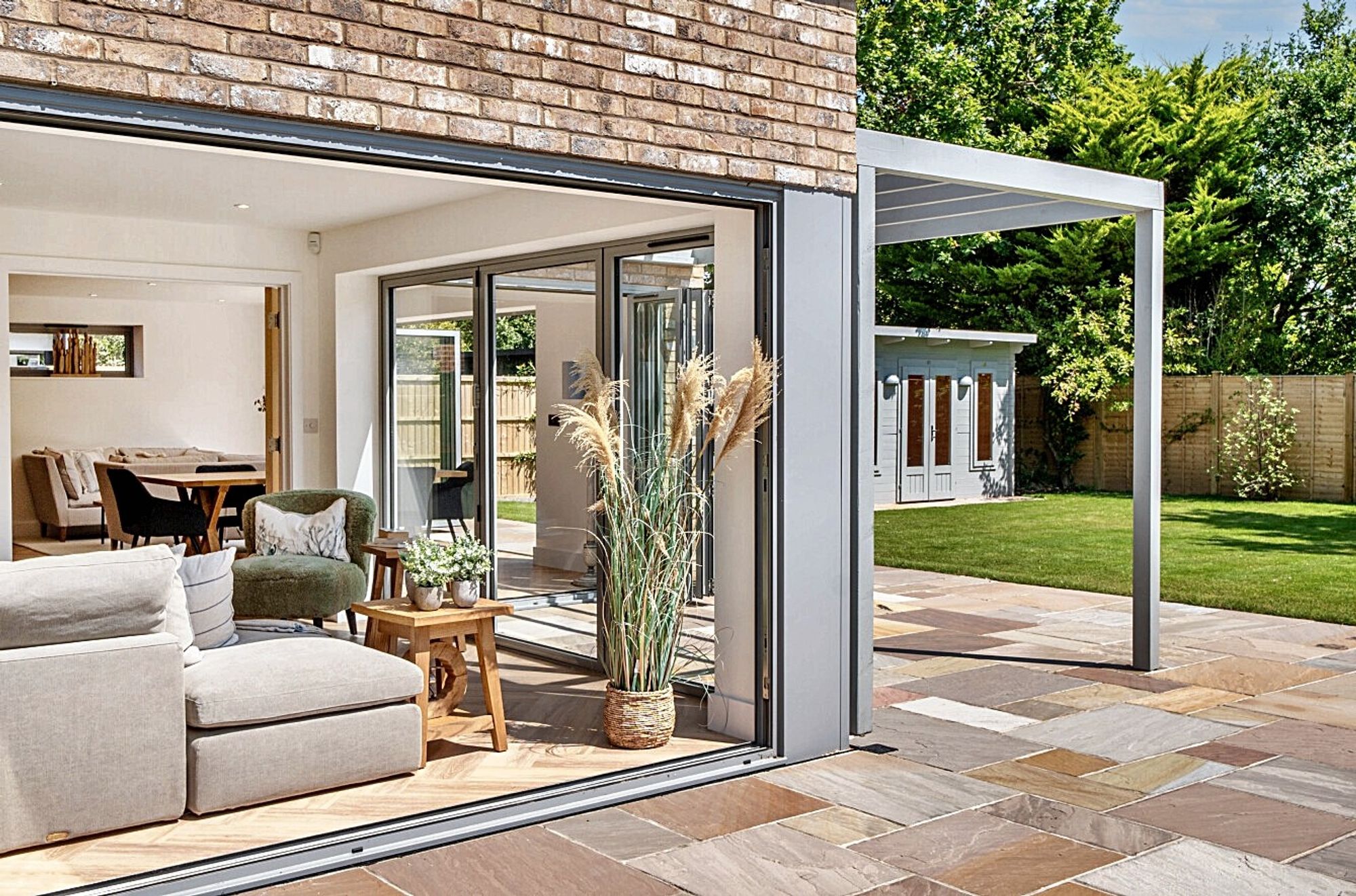 The outdoor area of the property is equally captivating, with a beautifully landscaped garden offering privacy and practicality. The patio area is perfect for al fresco dining, while a detached summer house provides an additional space ideal for a home office or hobby room.