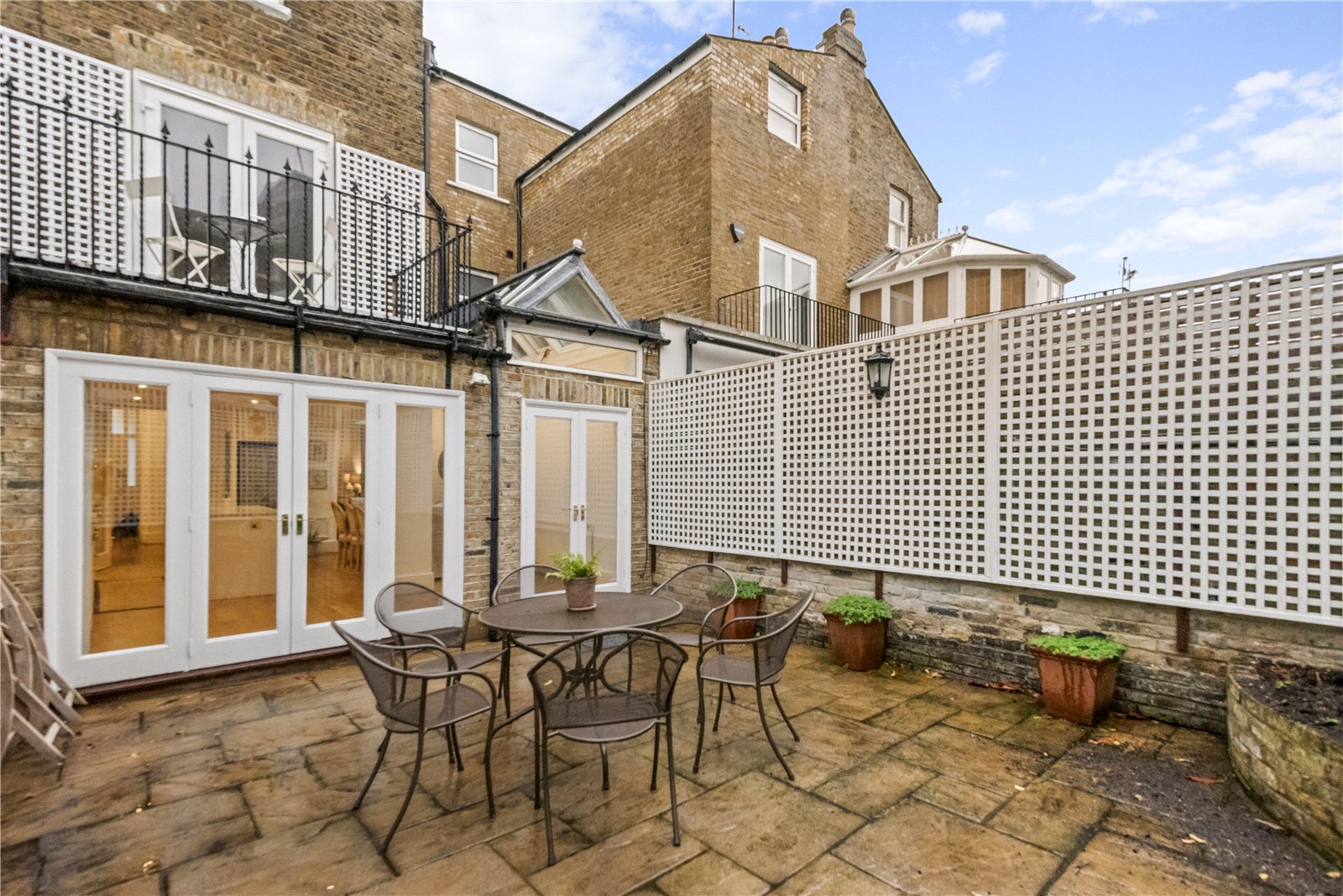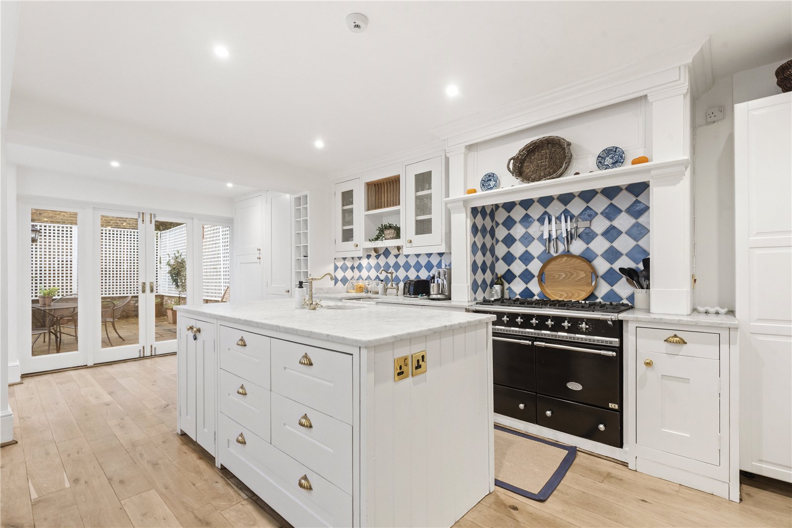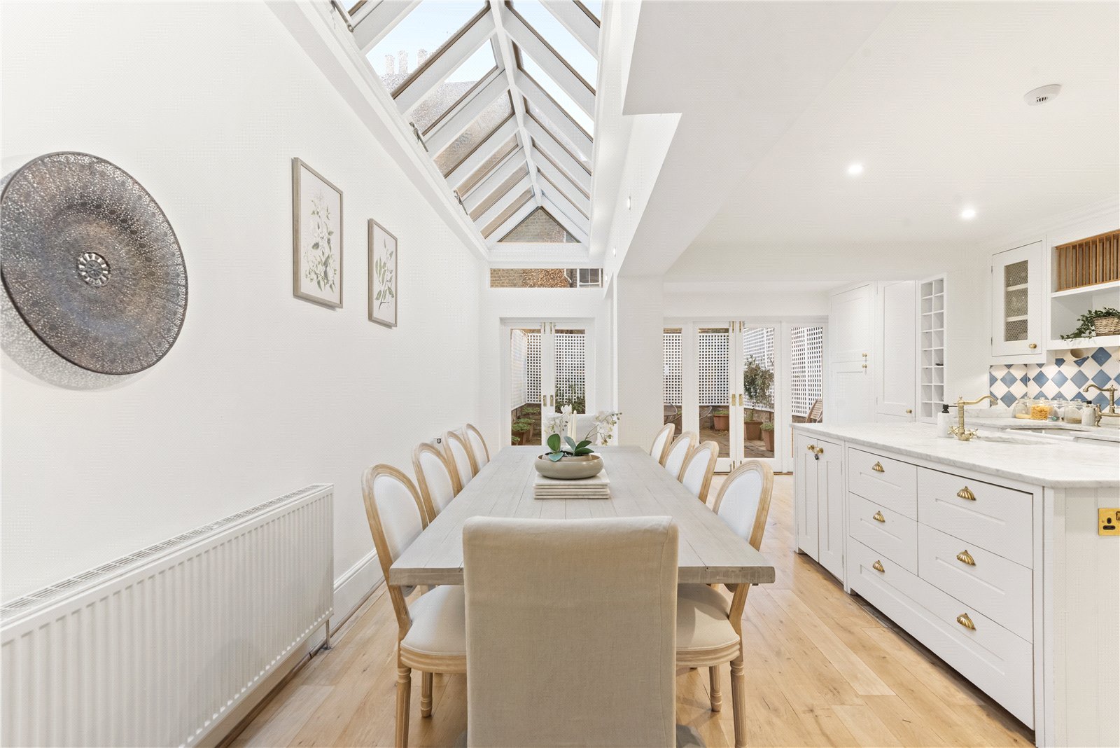Arranged over four floors, the property offers generous living space, elegant period features and a layout ideal for both family life and entertaining. The ground floor includes a bright double reception with original cornicing and a feature fireplace, leading down to a spacious open-plan kitchen, dining and sitting area — the heart of the home — with French doors opening onto a private paved garden.