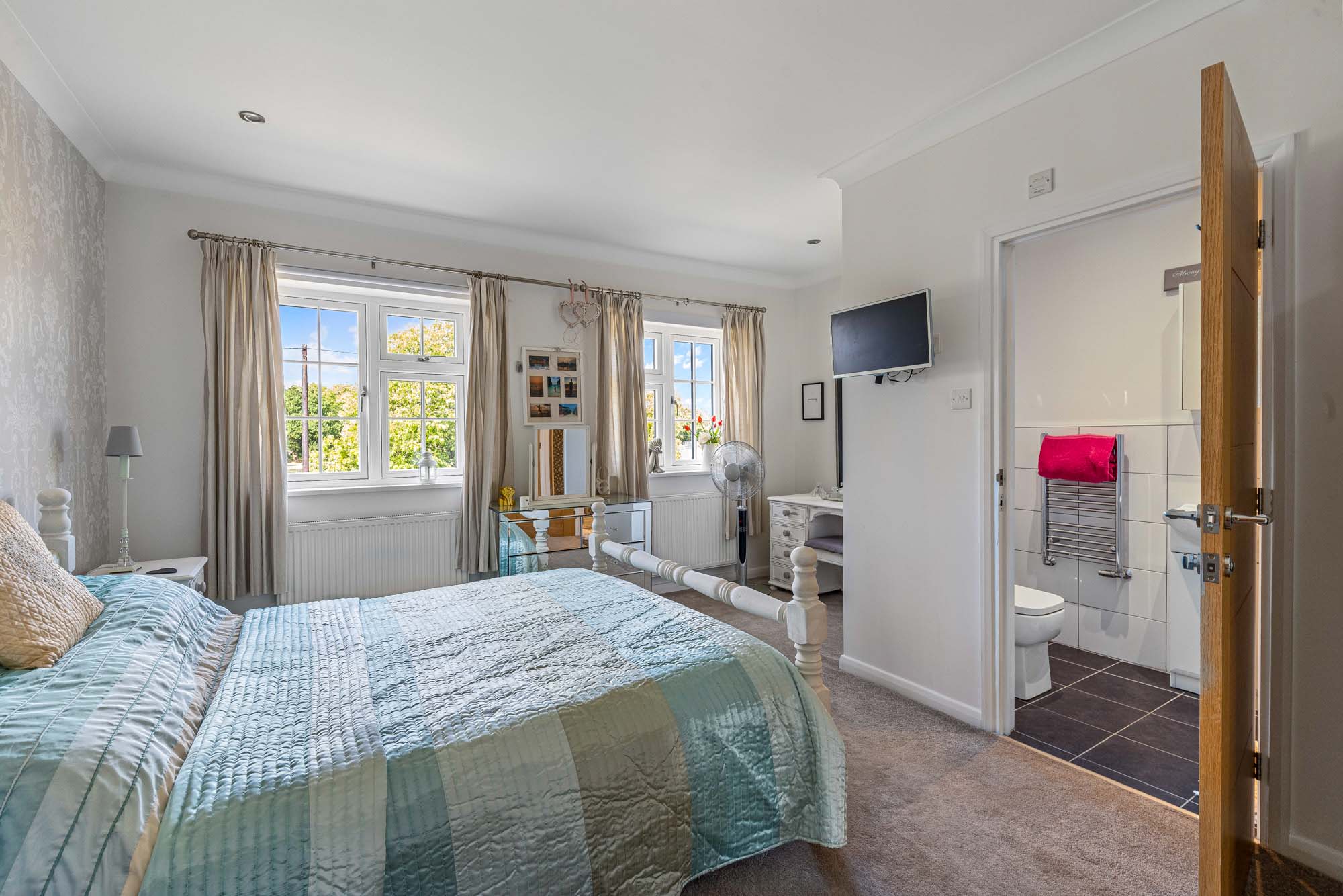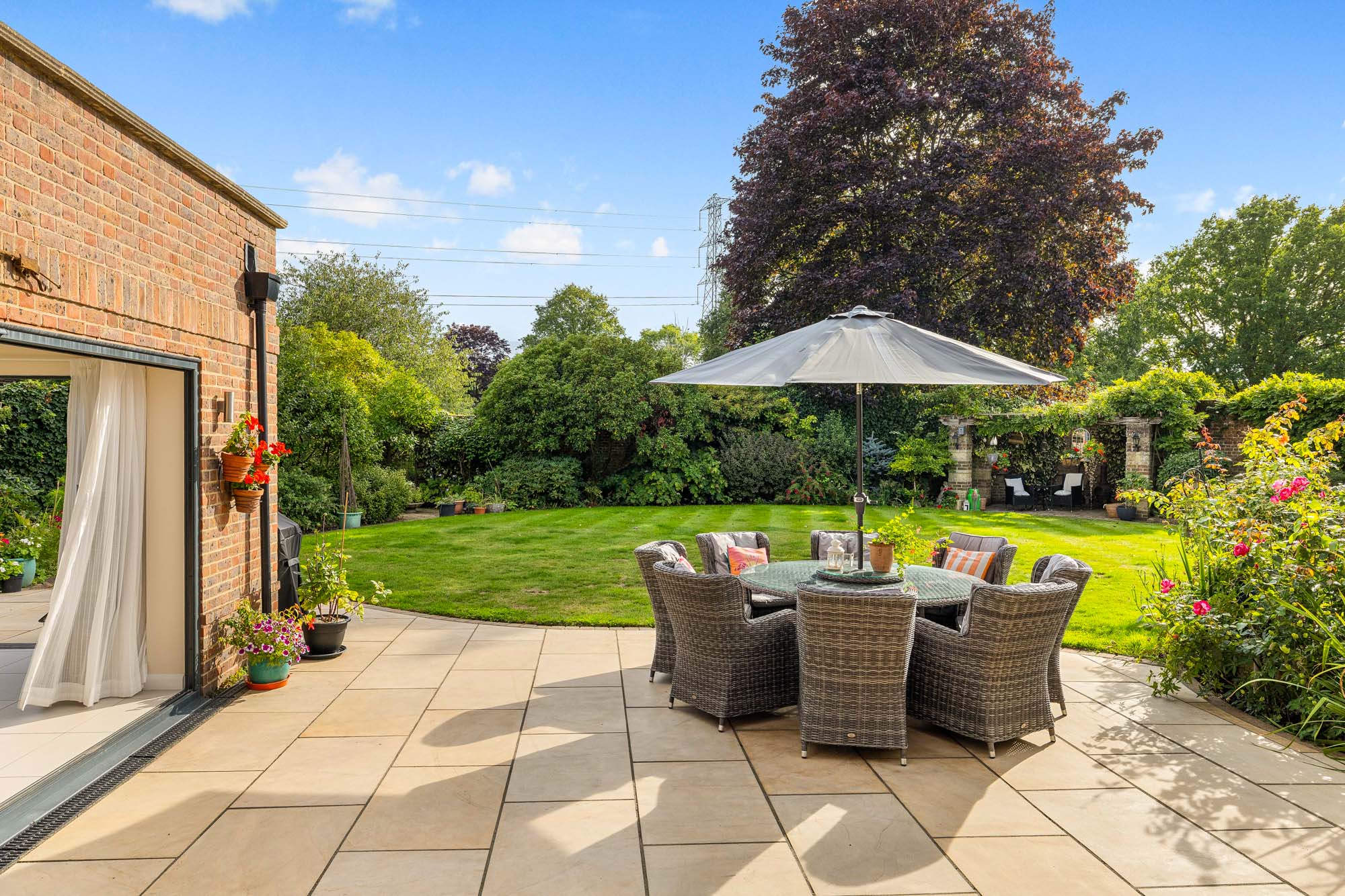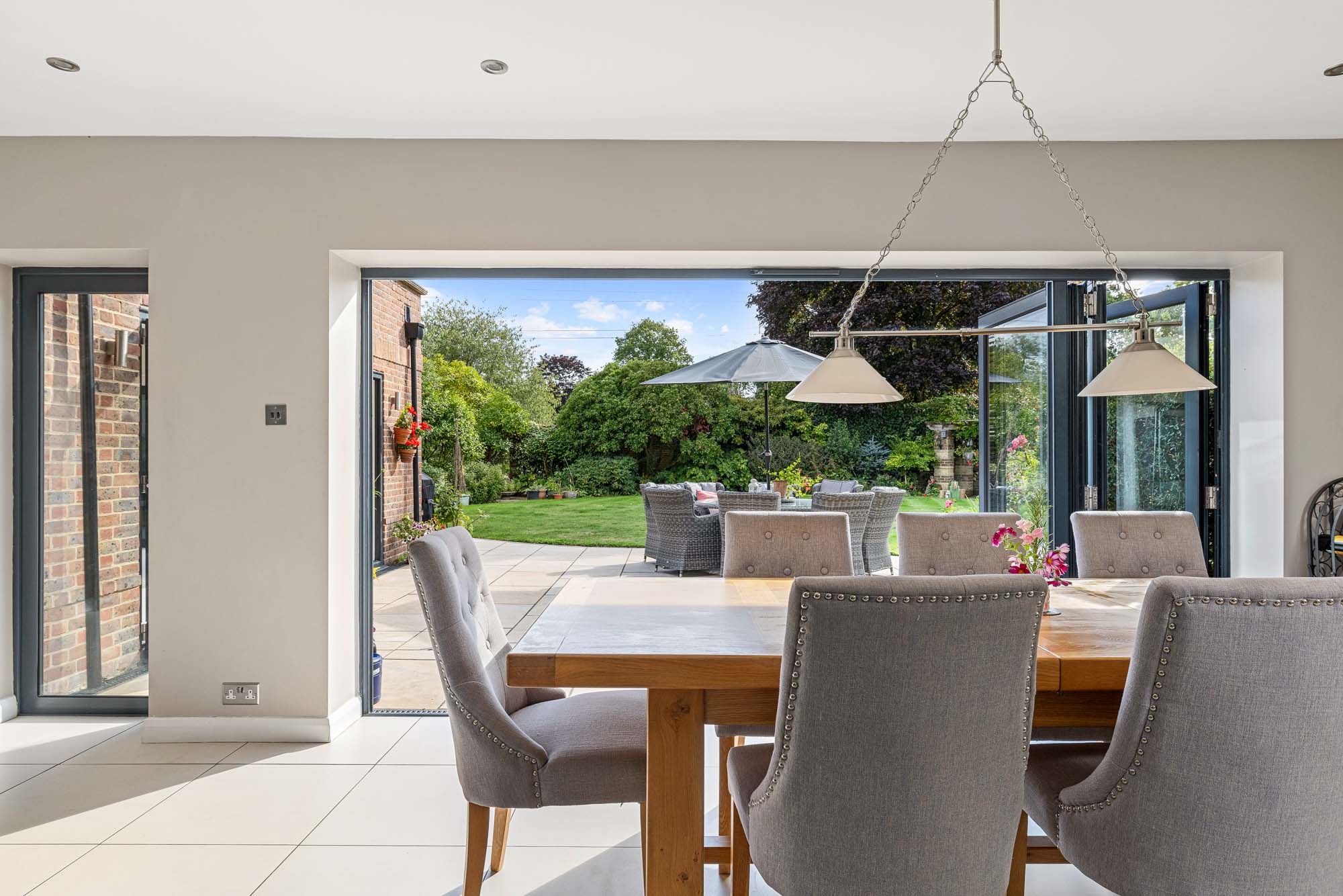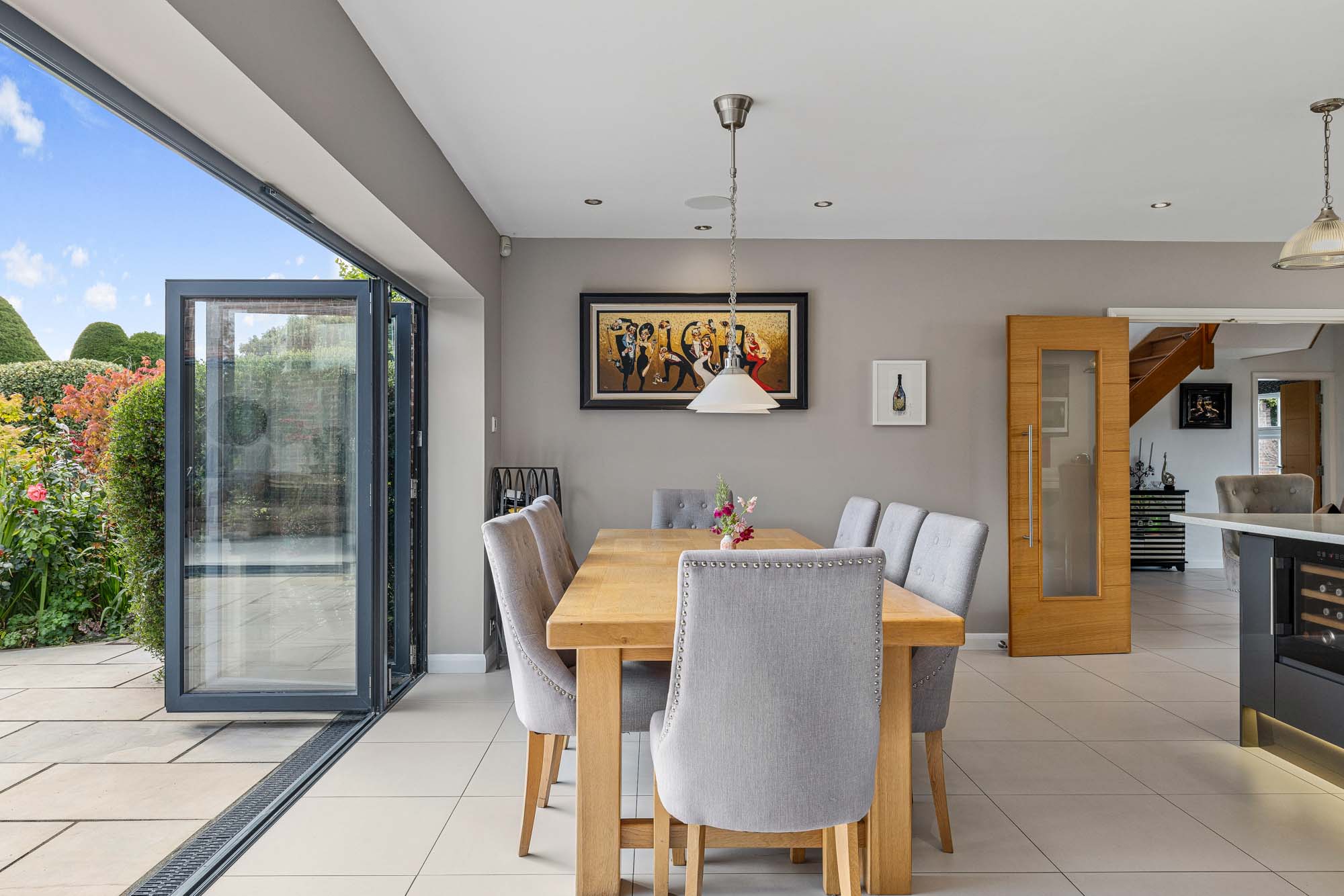 A spacious home with an imposing frontage, in-and-out driveway, and a private rear garden, featuring modern living spaces and planning permission for an extension.
