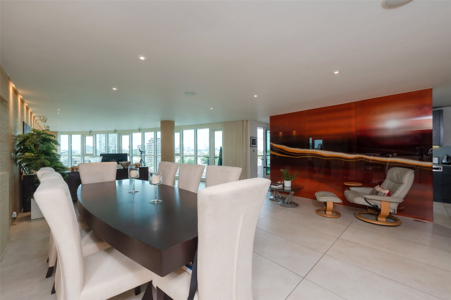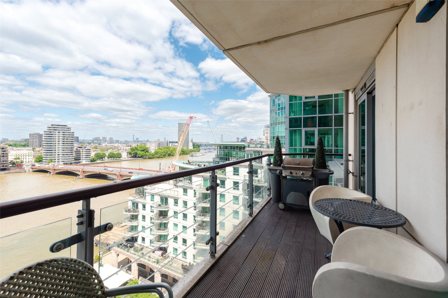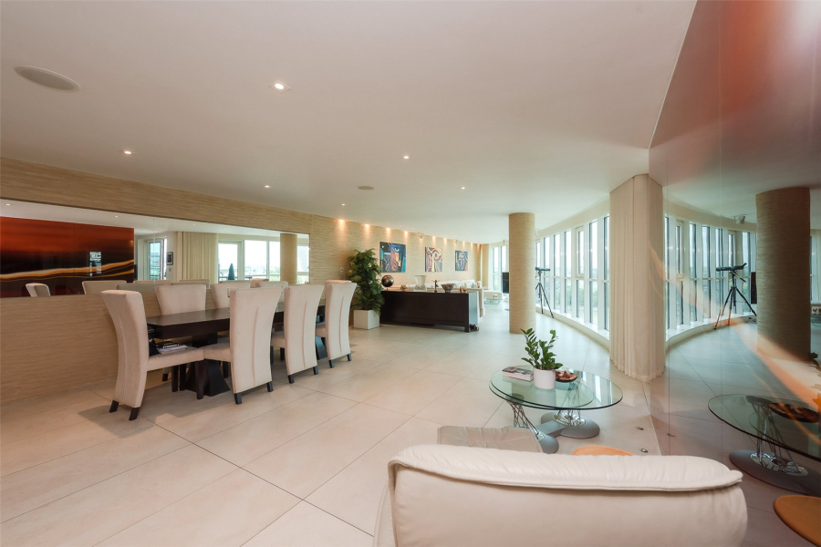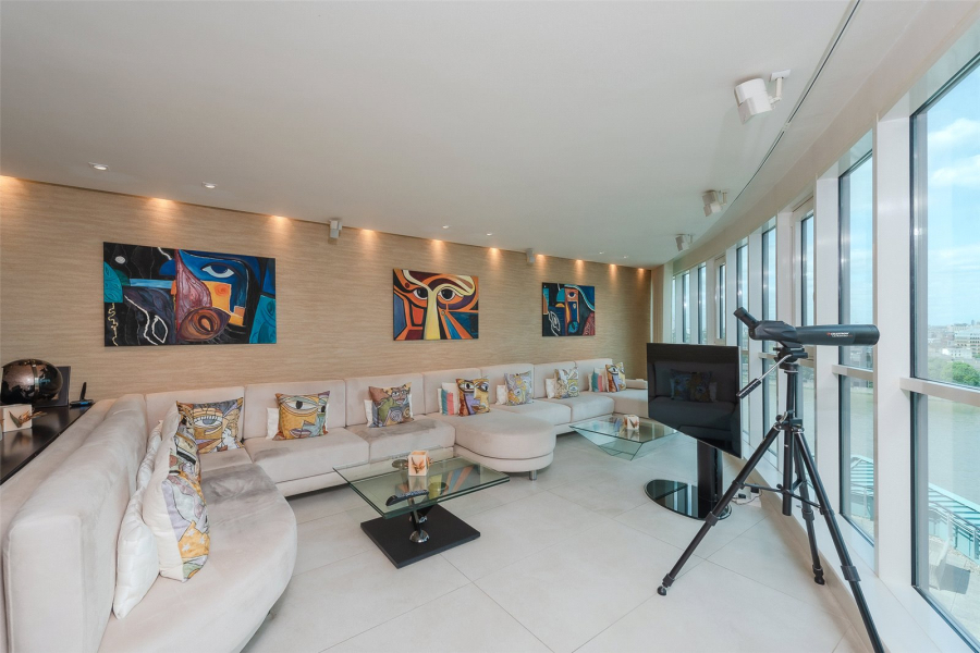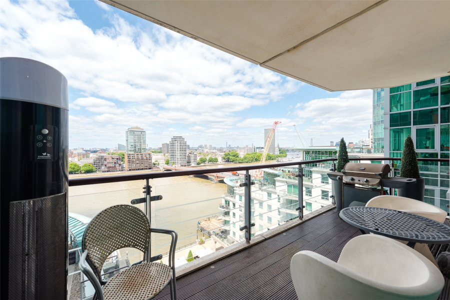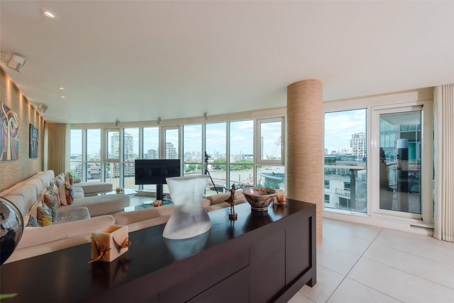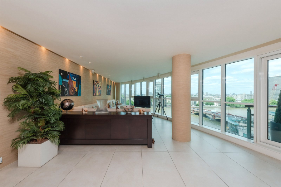 This spacious three-bedroom apartment has been redesigned and upgraded from its original specifications and offers an impressive 2,045 square feet of internal living space with a substantial 50ft reception, featuring floor-to-ceiling windows which offer breath-taking views down the river to Westminster bridge, London Eye and Houses of Parliament.